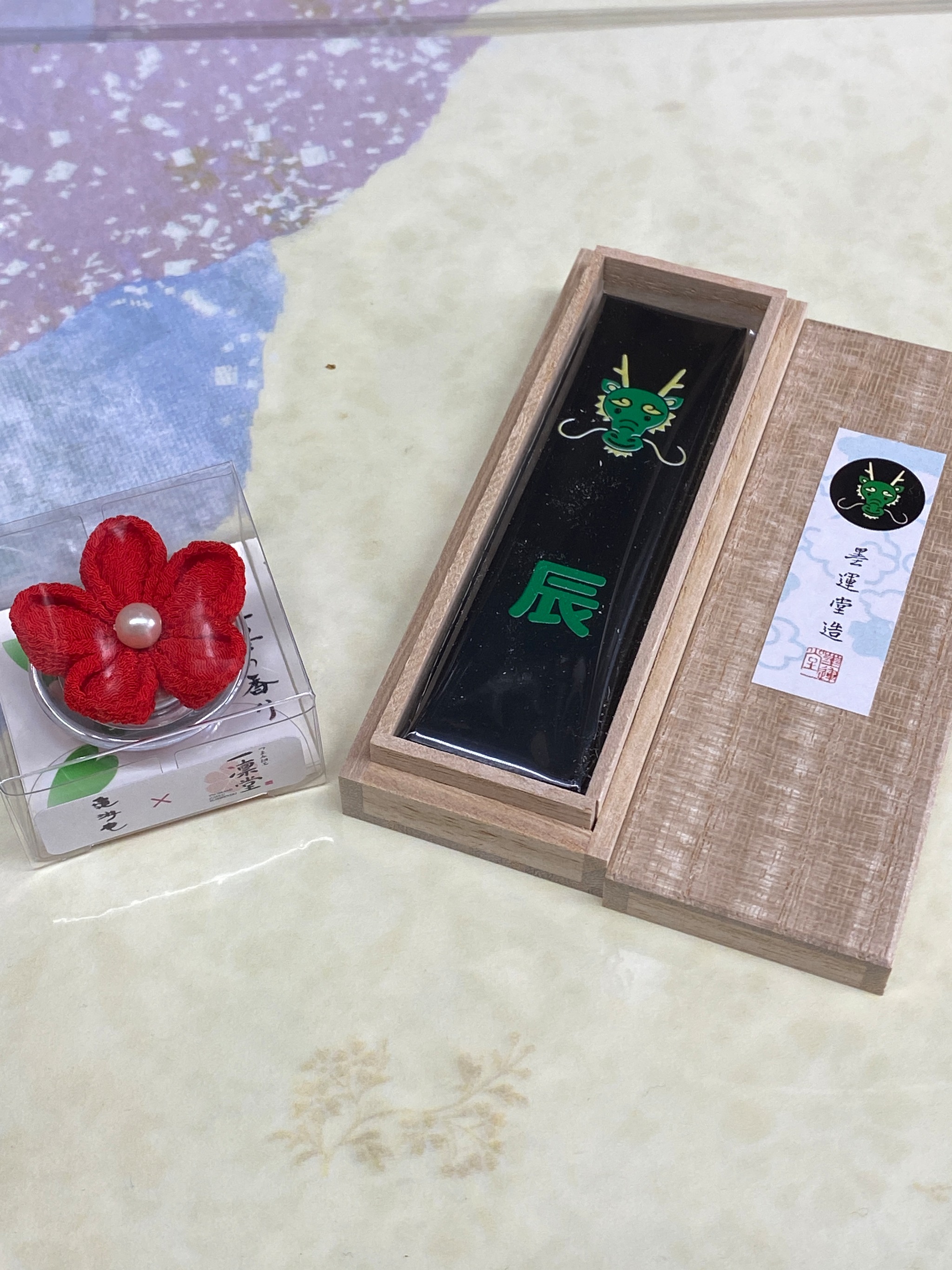 本日より購入の際の特典品をつまみ細工マグネットか早おりの干支墨にさせていただきます。