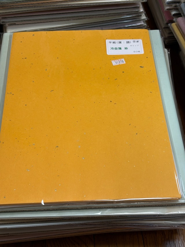 漢字•調和体用冷金箋(オレンジ色)半紙判50枚 Reikin-sen Calligraphy Paper – Orange, Hanshi Size, 50 Sheets (for Kanji & Chōwa-tai)