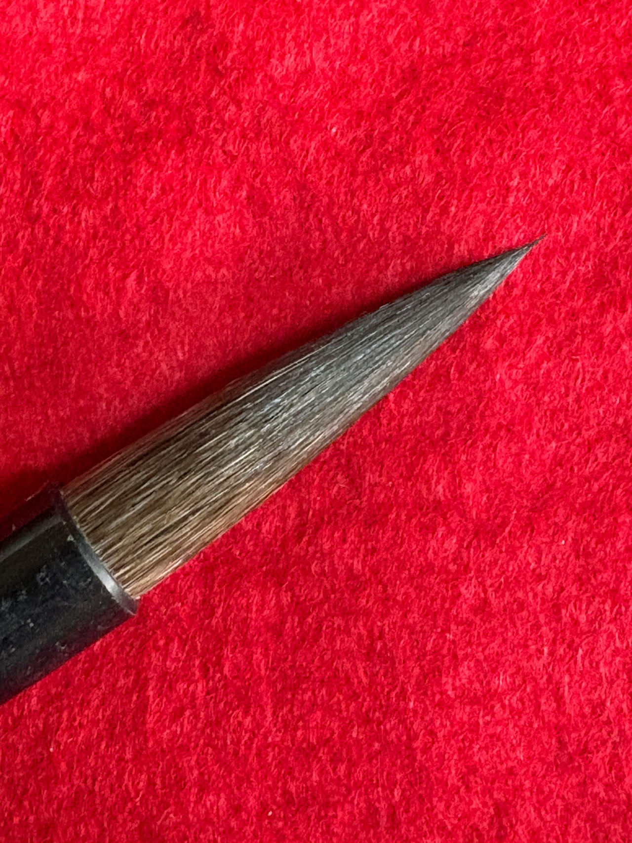 This is a mixed-hair calligraphy brush made with gray squirrel hair and raccoon hair.
