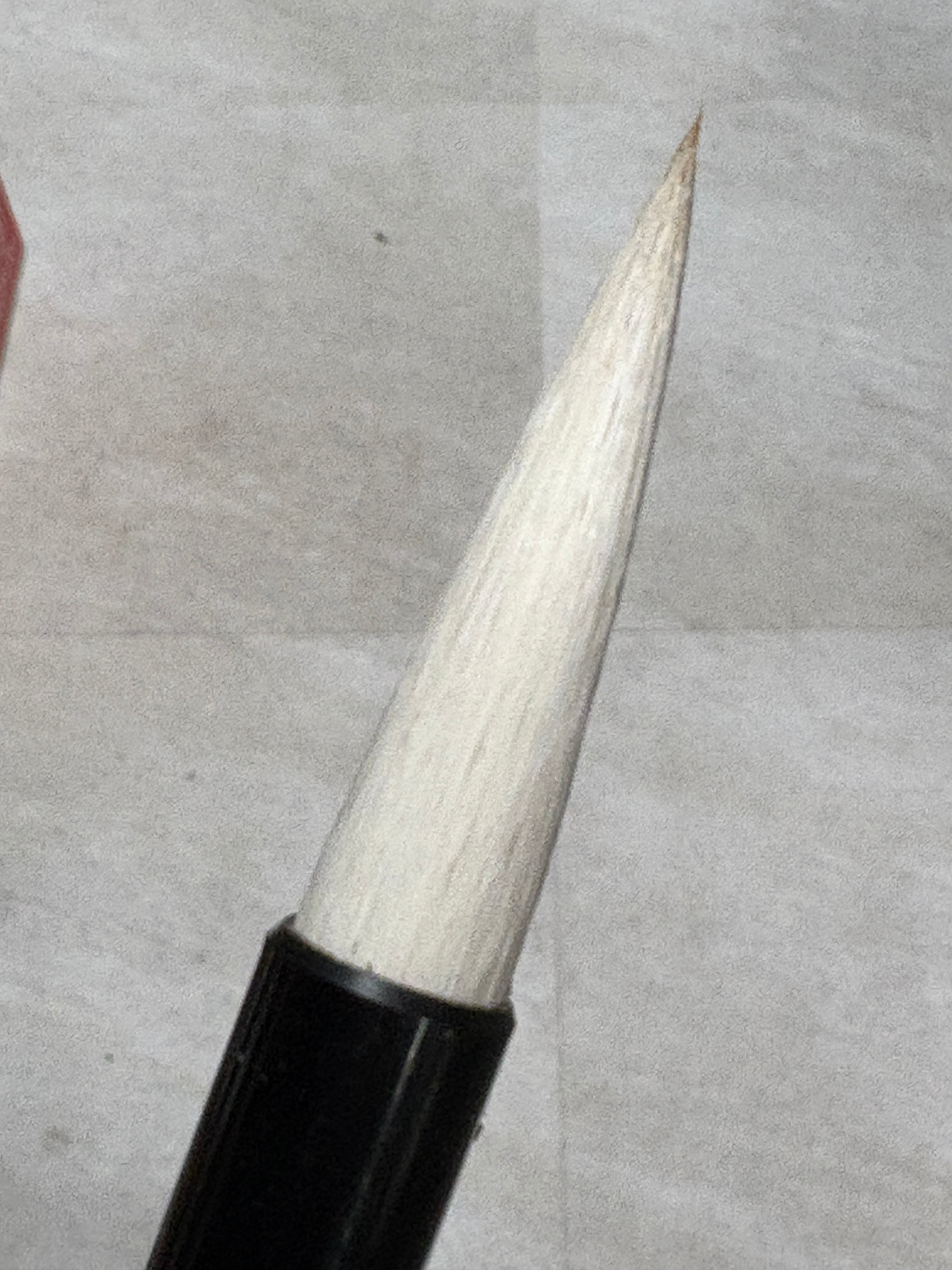 馬毛と羊毛の兼毛筆でコシはある短穂気味な軸径13㎜穂長45㎜の筆なので、非常に使いやすい筆になっているんですが、見た目も特徴で当店では羊毛筆以外でレギュラー品では初の朱塗り筆になります。