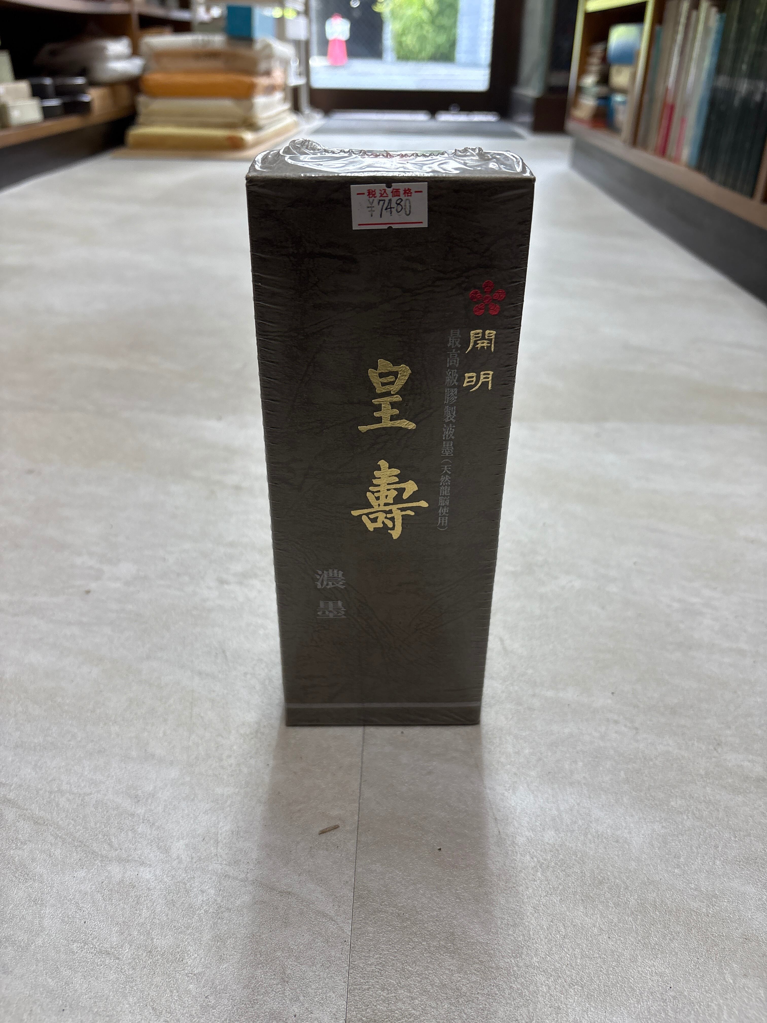 厳選された純油煙、天然膠、香料には天然龍脳を用い、特殊製法で仕上げた最高級膠系濃墨です。膠分が枯れ粘り気が少なく、煤の粒子が非常に細かい為、濃墨でありながら筆運びが軽く、墨の伸びが良く磨った墨に近い書き味です。漢字、仮名作品にも大変おすすめな墨液で内容量は500ml。