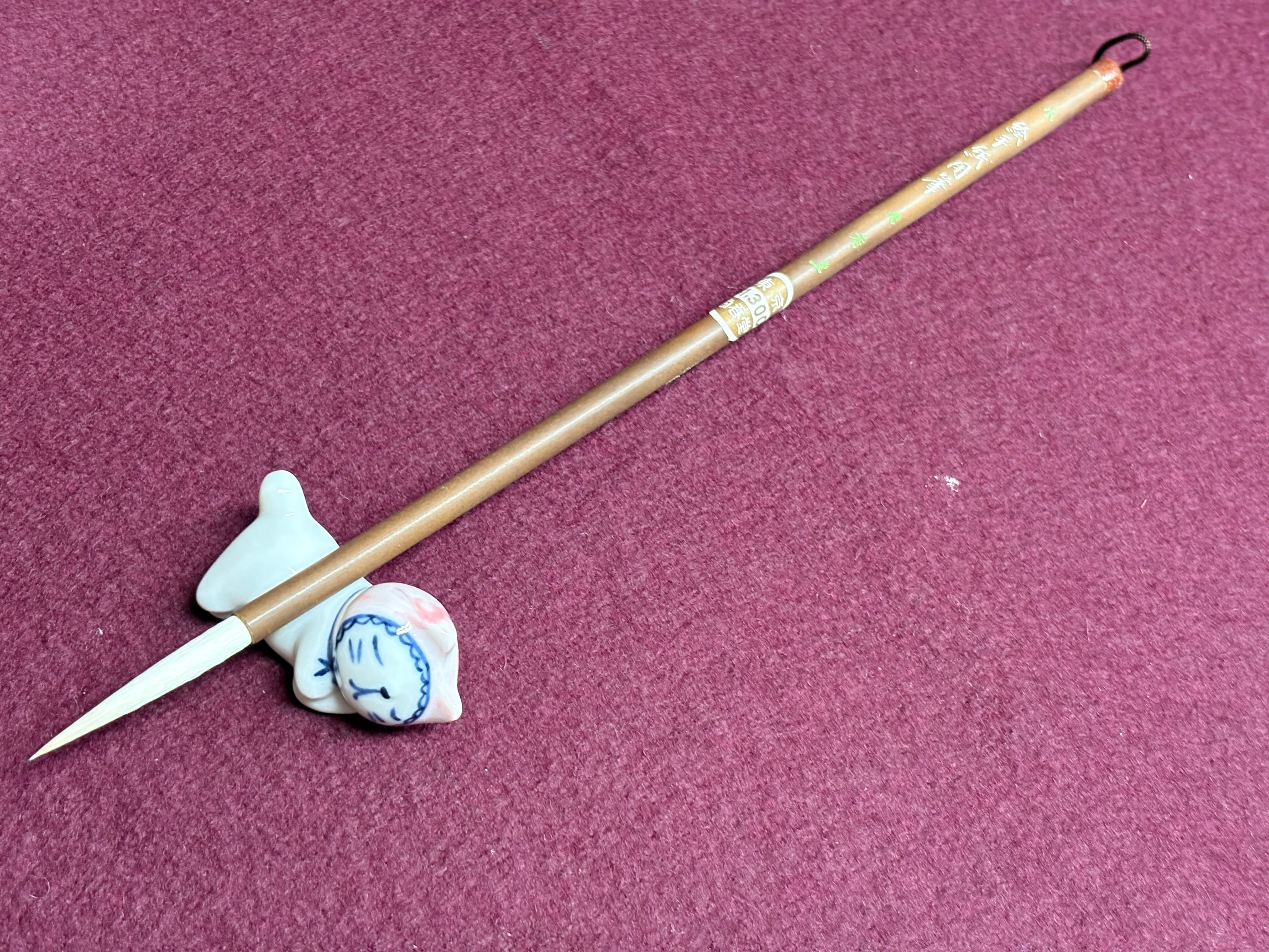 以前、お試し筆大会をやったところ、評価が高かった筆で、やはり古い羊毛なのである程度のコシがありつつ羊毛の良さも出ているところと当時のままの価格も相まって好評をいただきまして、そろそろ欠品かな〜と思っています、、、もう一度作ると倍ぐらいかかると言われたので、これで終了かと思っております。