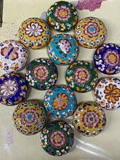 黄色ベースのものですが手作りで全部違うため、真ん中のものを含めた柄は変わる場合があります。