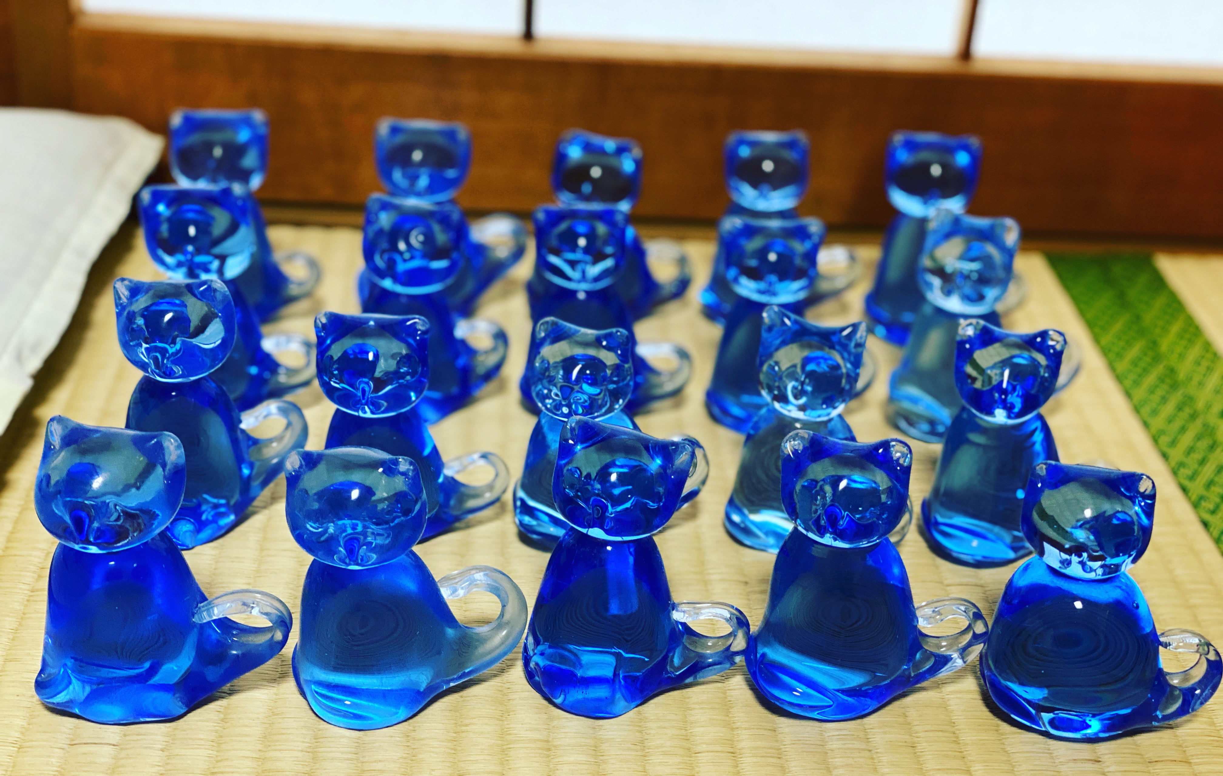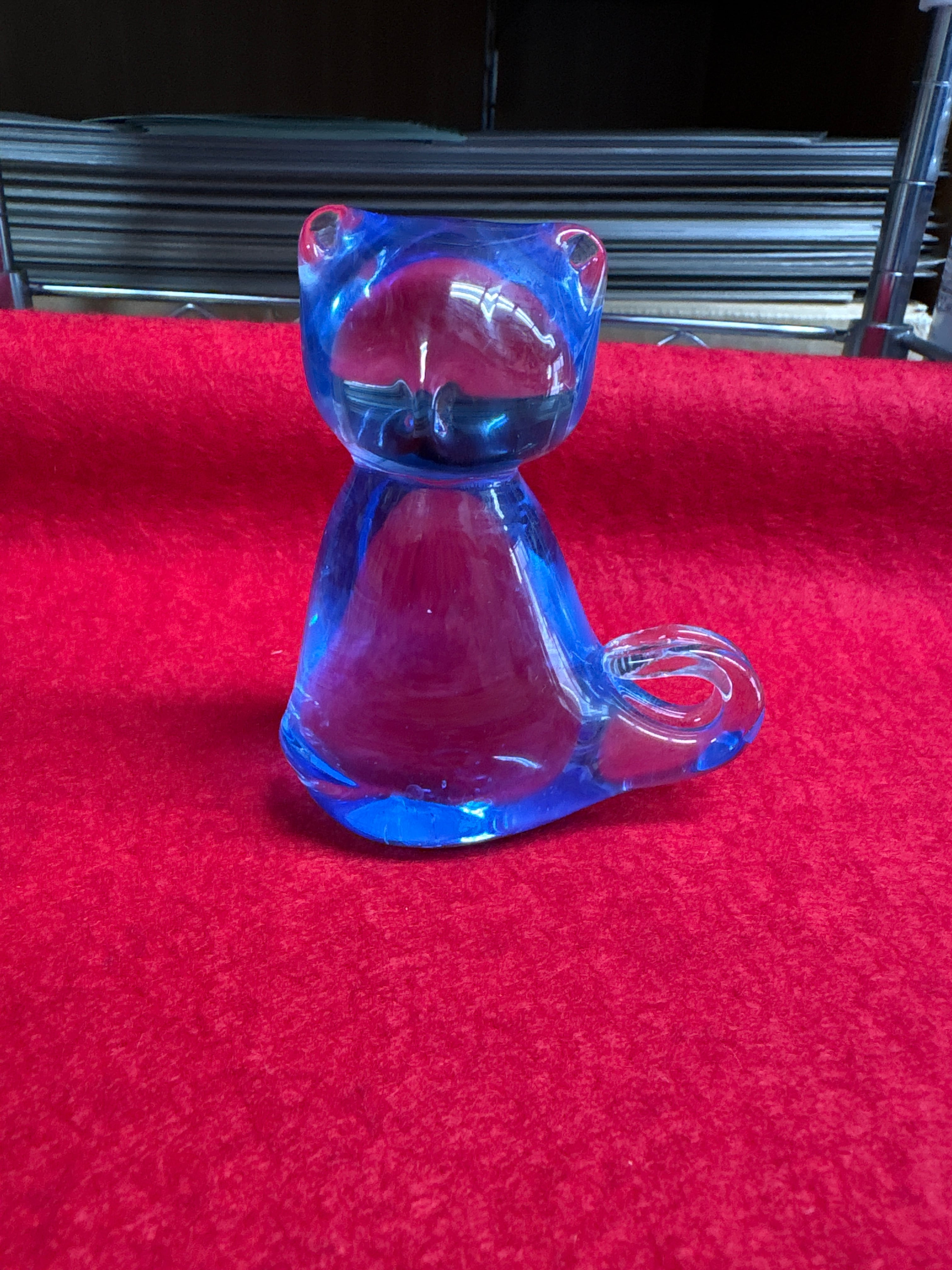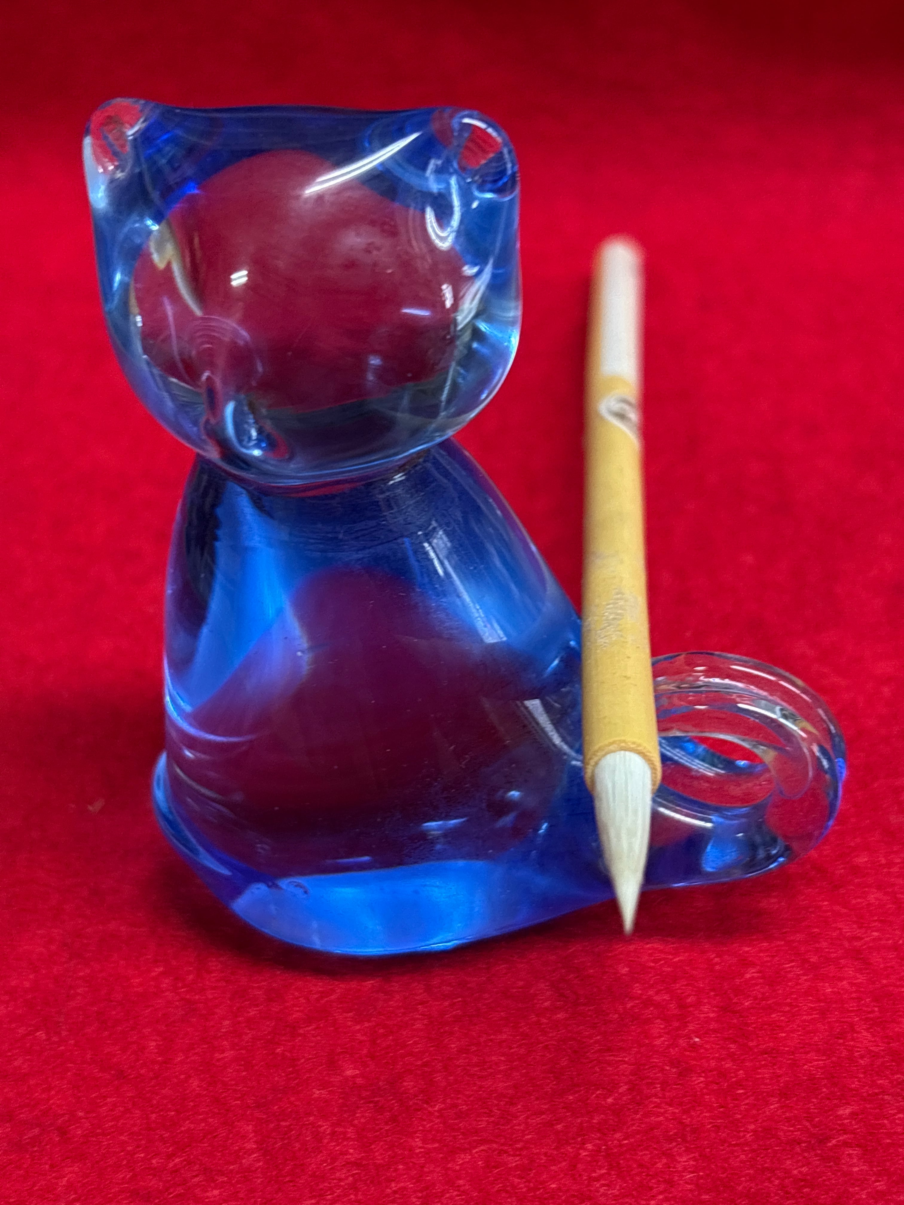 尻尾部分が筆置きにもなるガラス文鎮になります。
