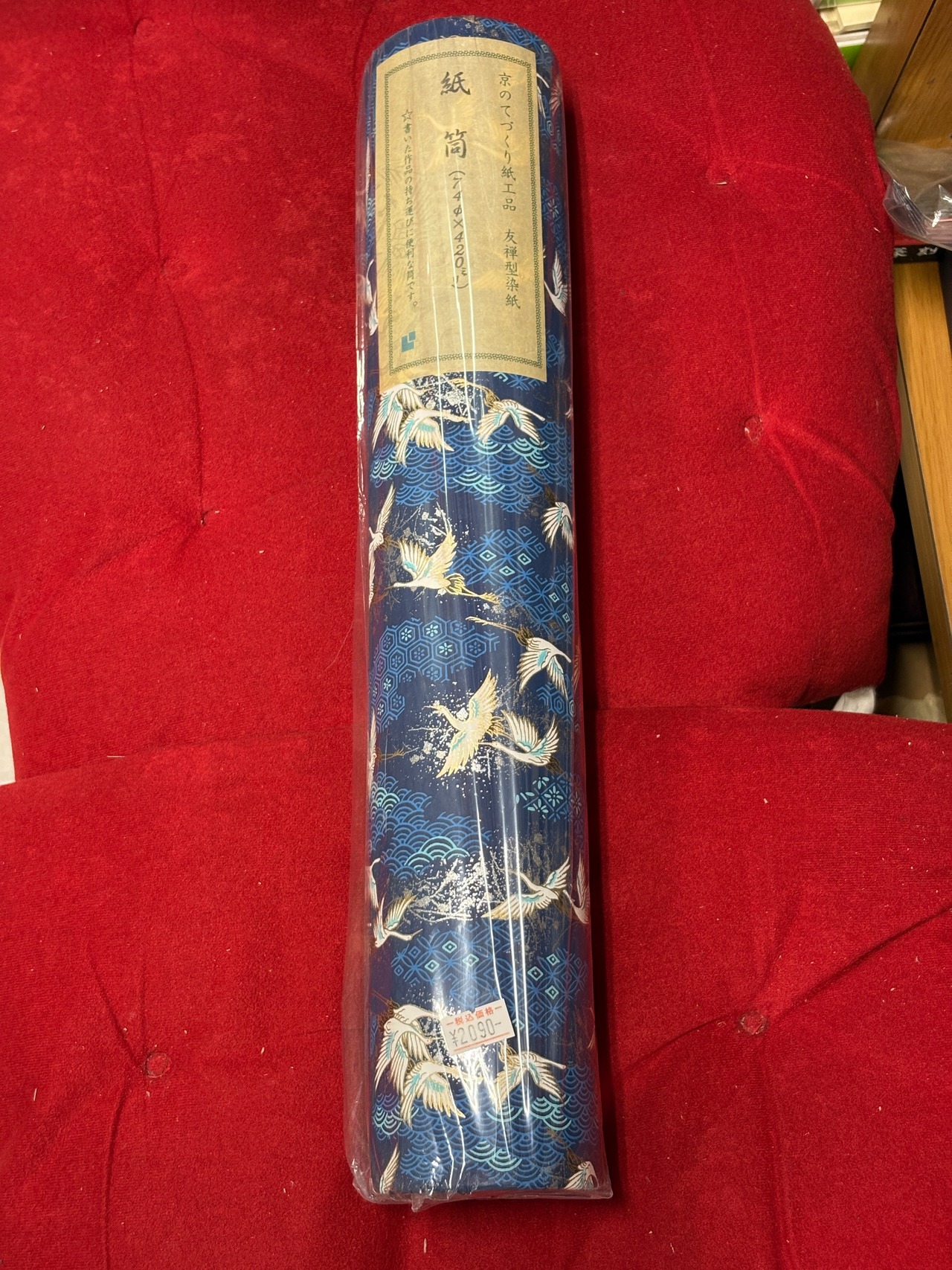 半切持ち運び用の千代紙で巻かれた紙筒になります。7.4㎝直径×42㎝