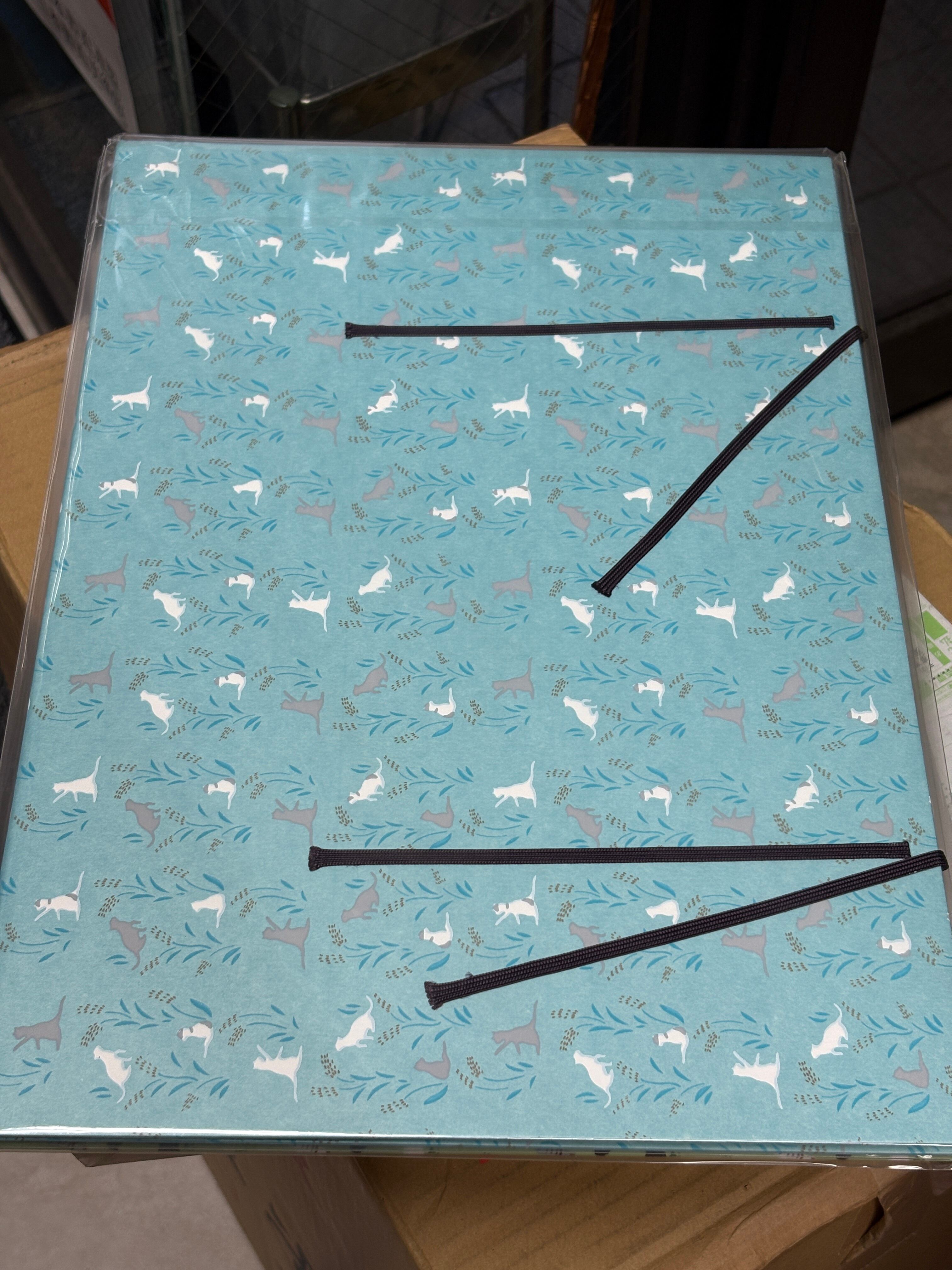 半紙や半懐紙持ち運び用の千代紙で巻かれた紙ばさみになります。縦約42㎝、横約29㎝