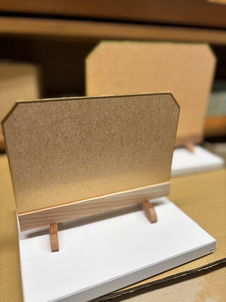 The golden surface is made from Kin-sen paper—a special type of gold paper layered with thin washi (Japanese paper)—which allows ink to adhere more easily without repelling.