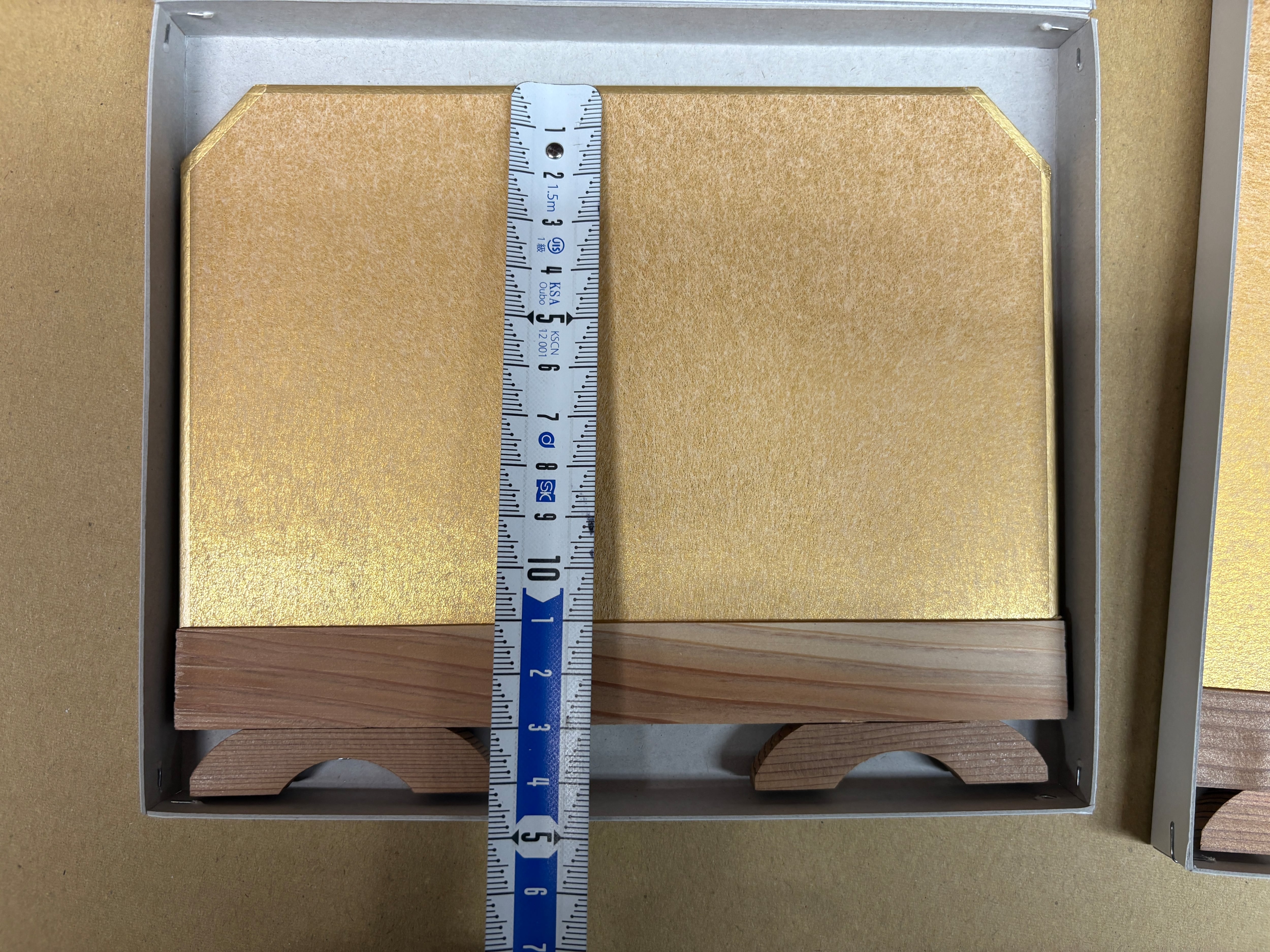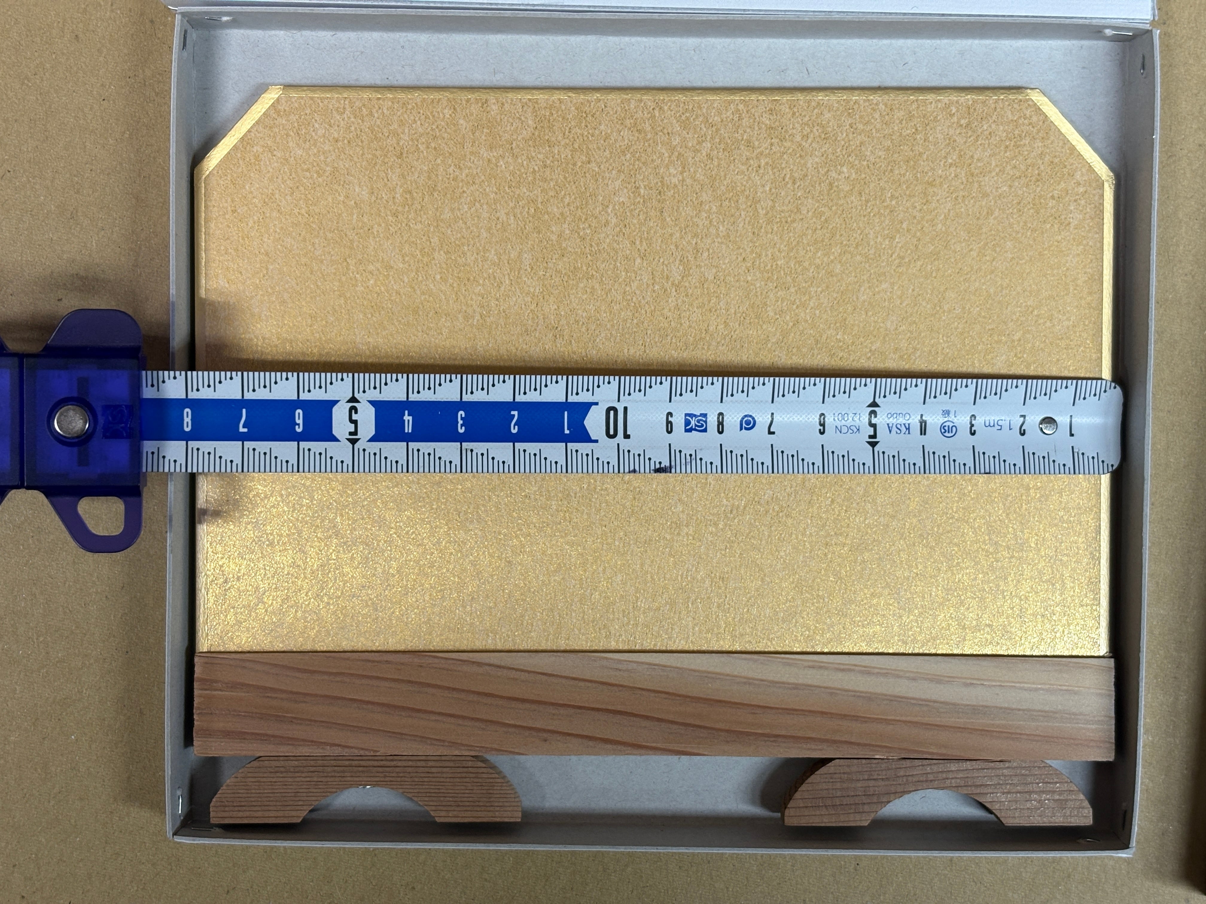サイズは金の部分がタテ11cm/ヨコ18cmになります。