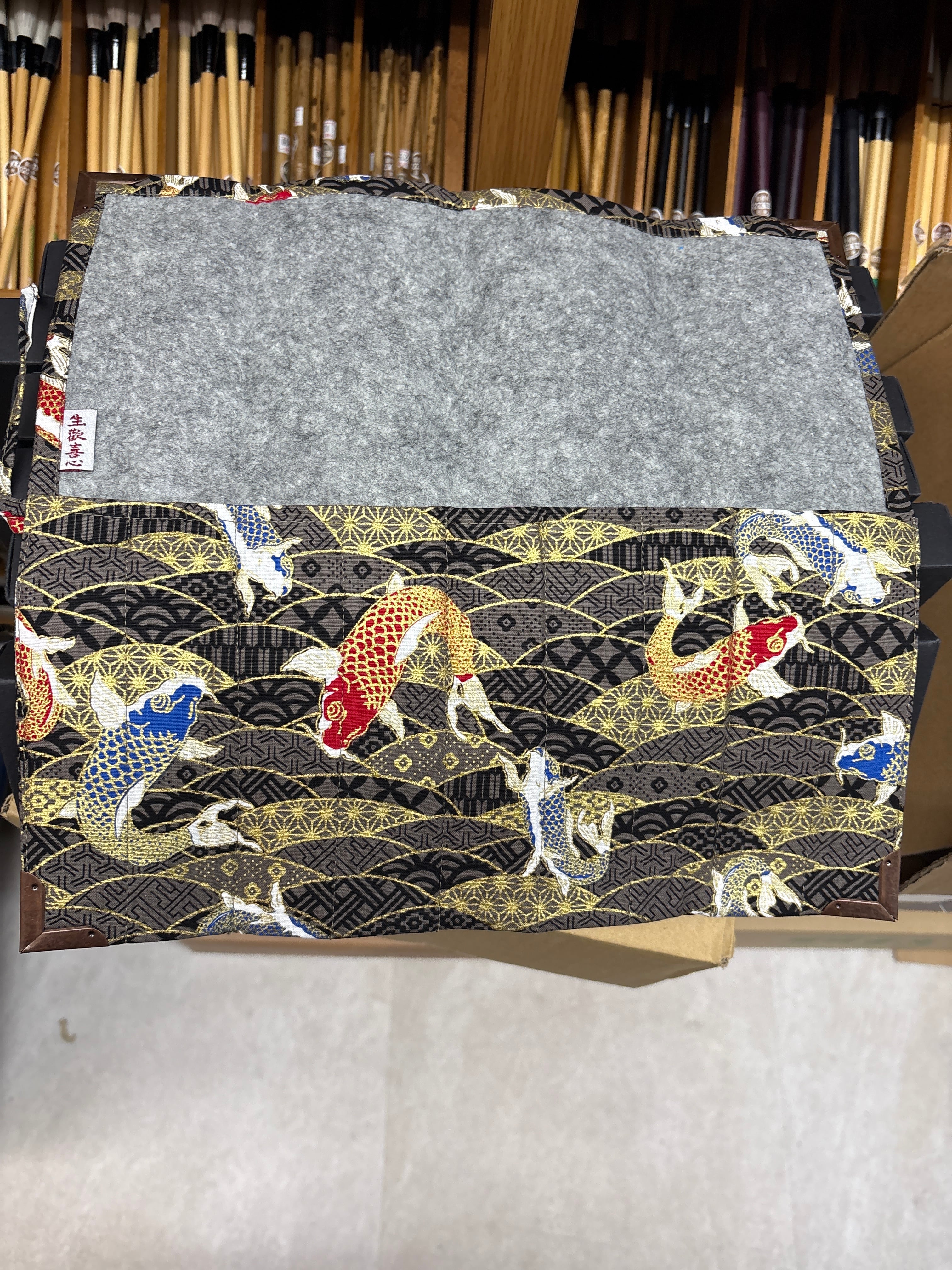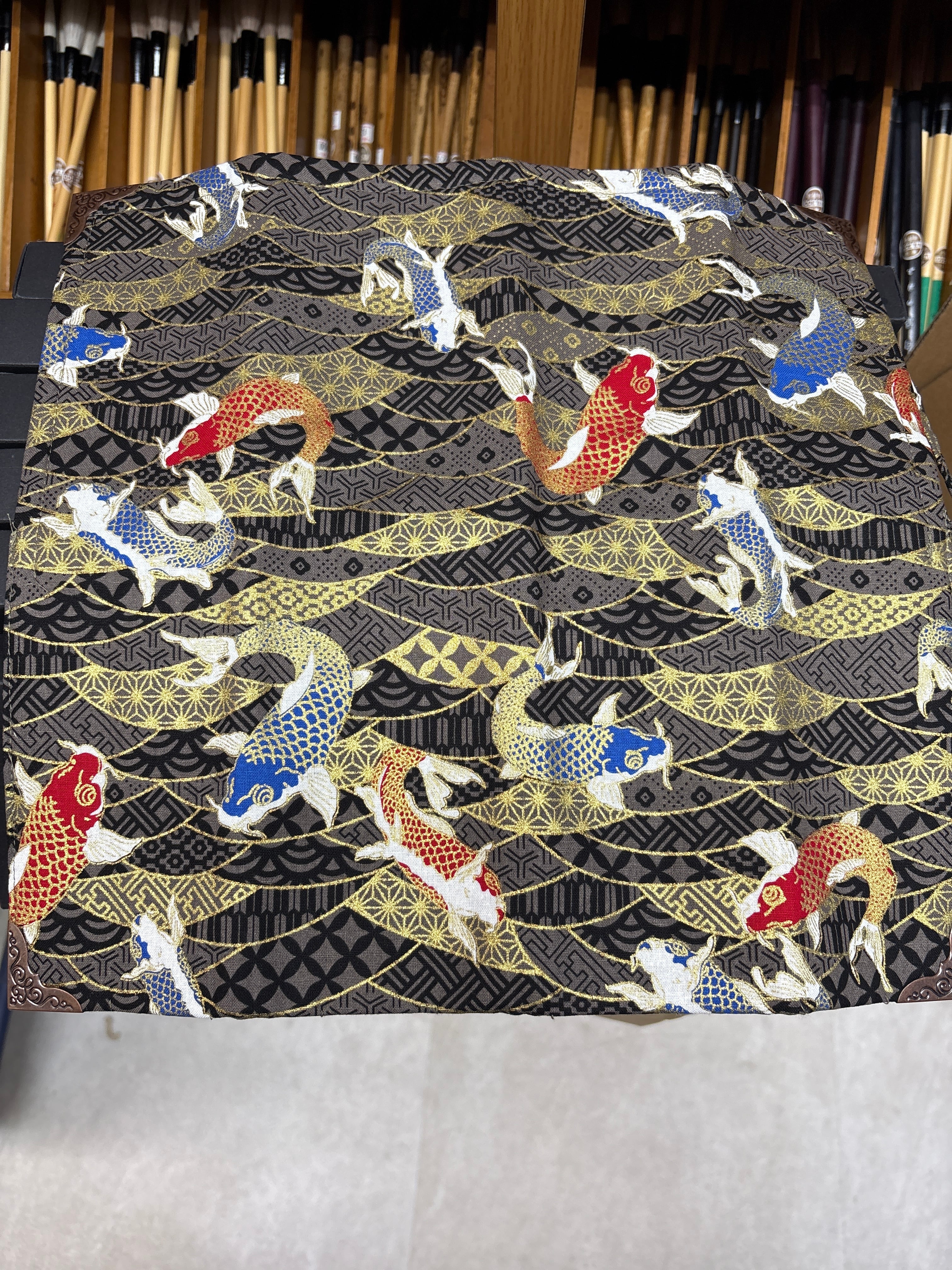 布製の和風柄筆巻で黒地に鯉の模様が入ったものになります。