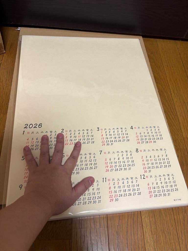 こちらも書を書くカレンダーですが、こちらは色紙ではない鳥の子紙で、半紙などに比べると厚手の紙になります。