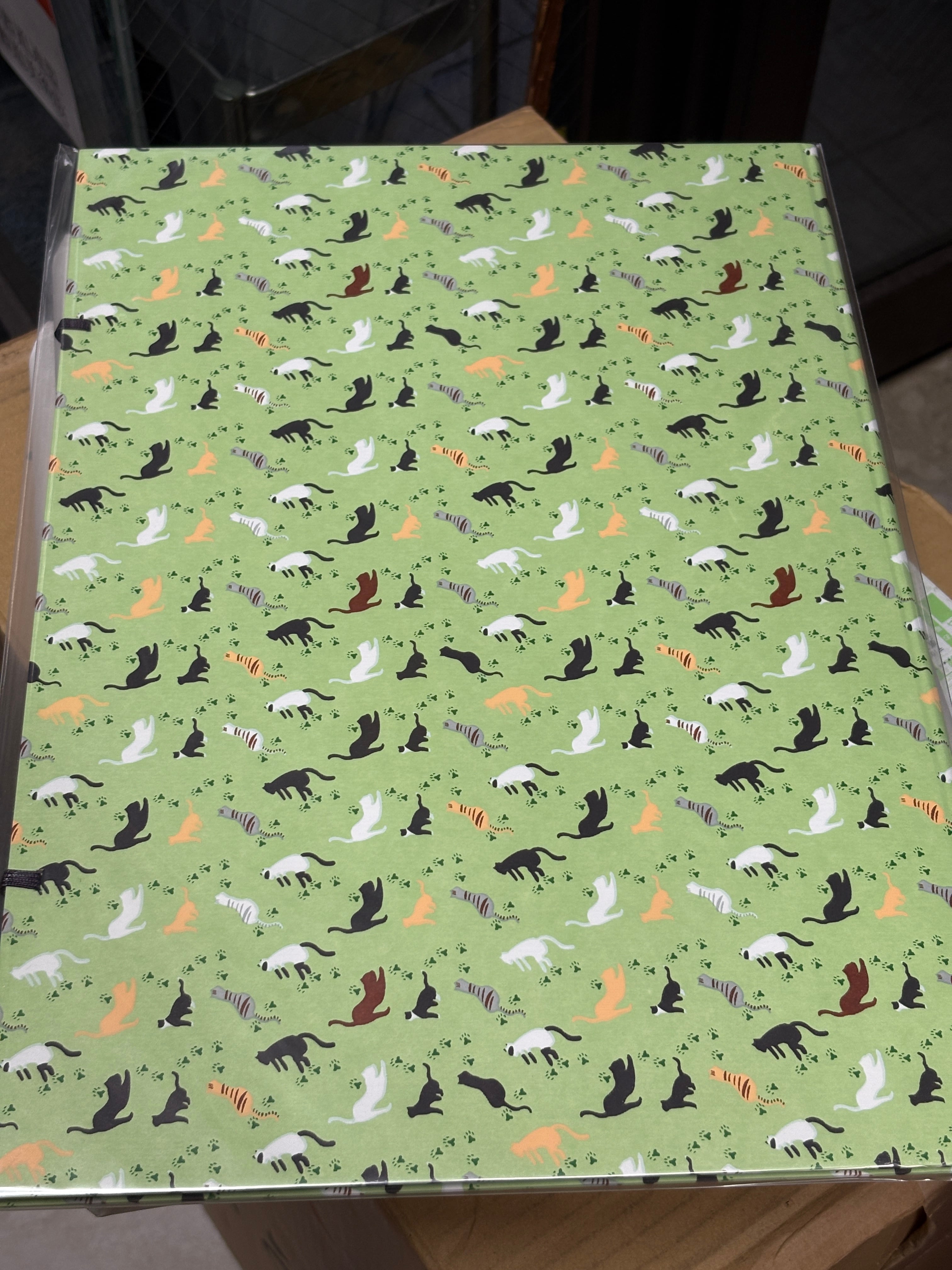 今回は黄緑色ベースの猫柄になります。