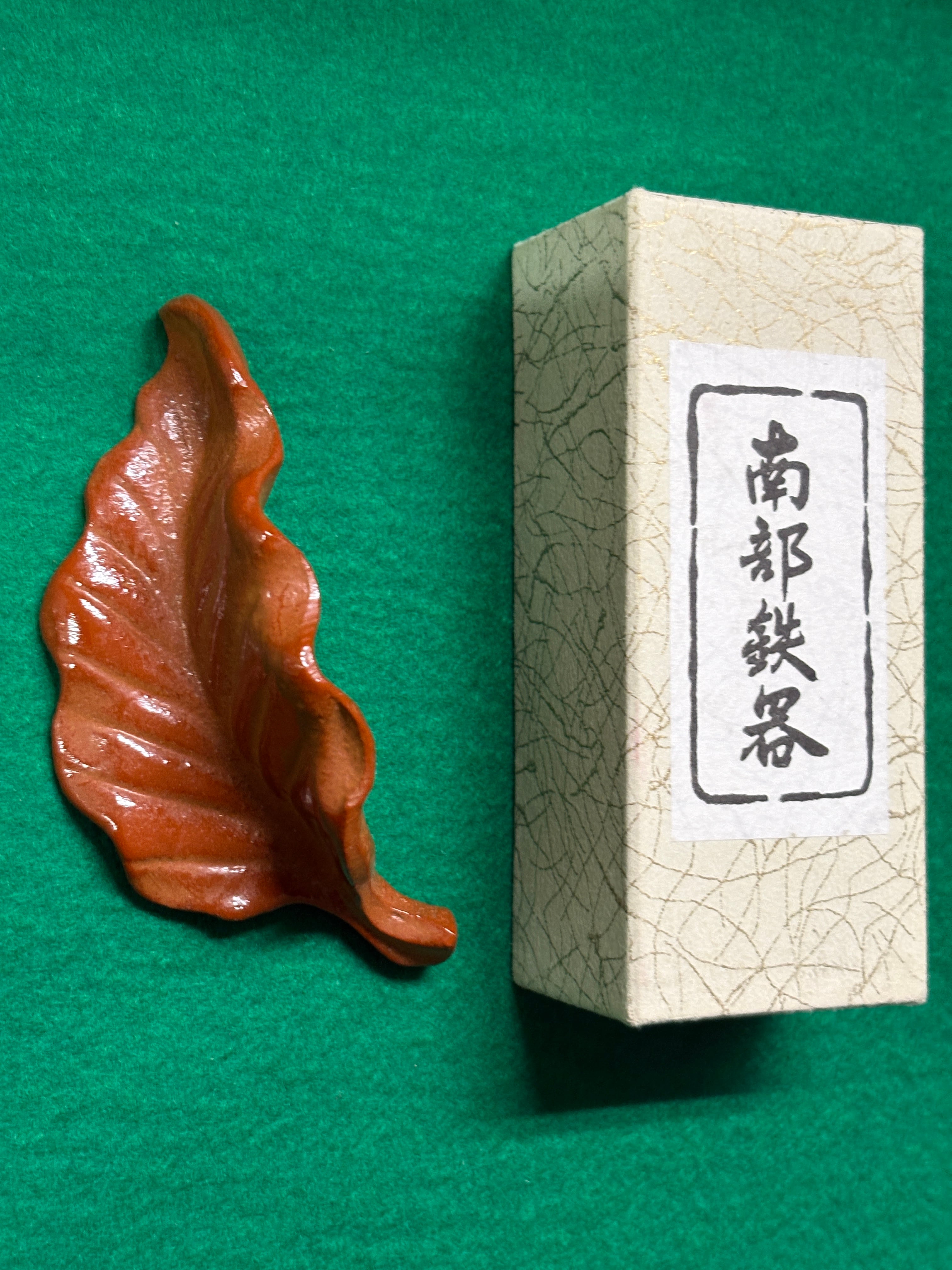 南部鉄器文鎮・筆架『木の葉(茶)』