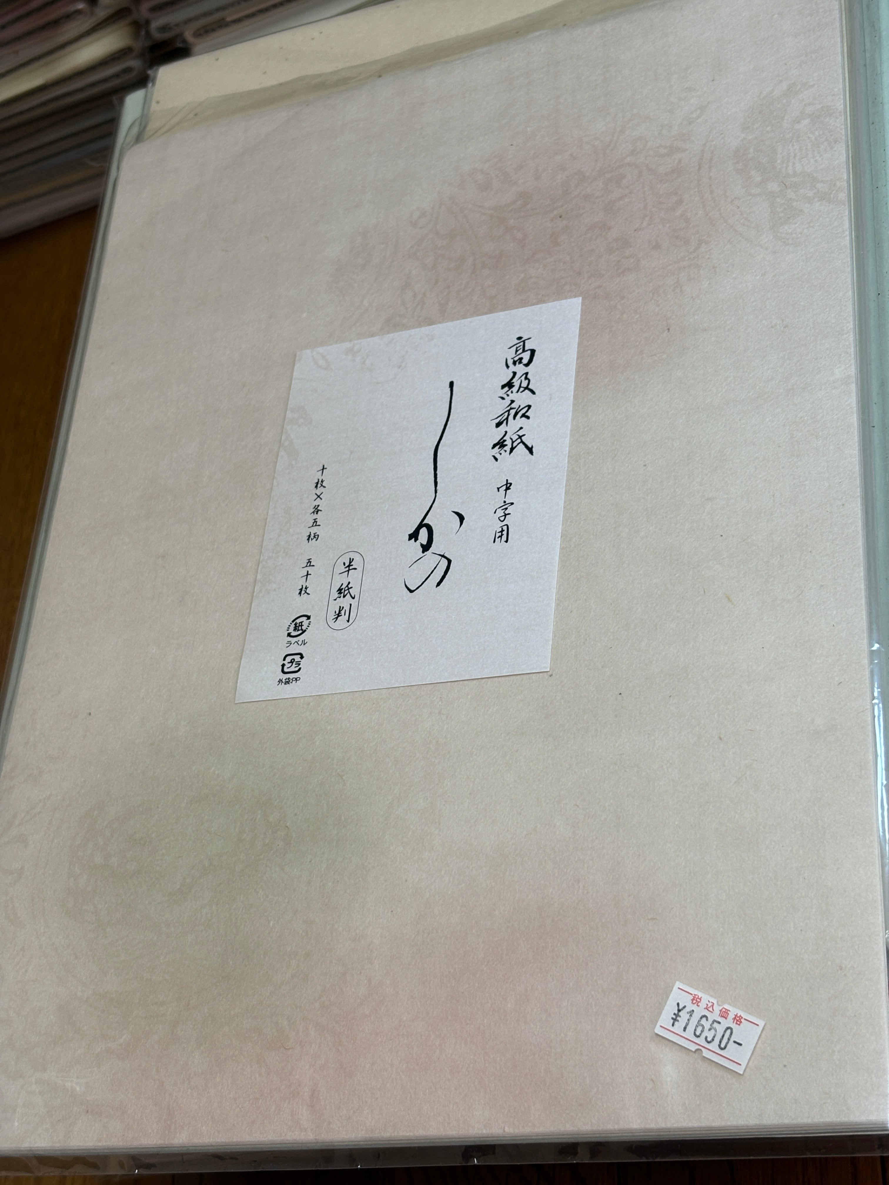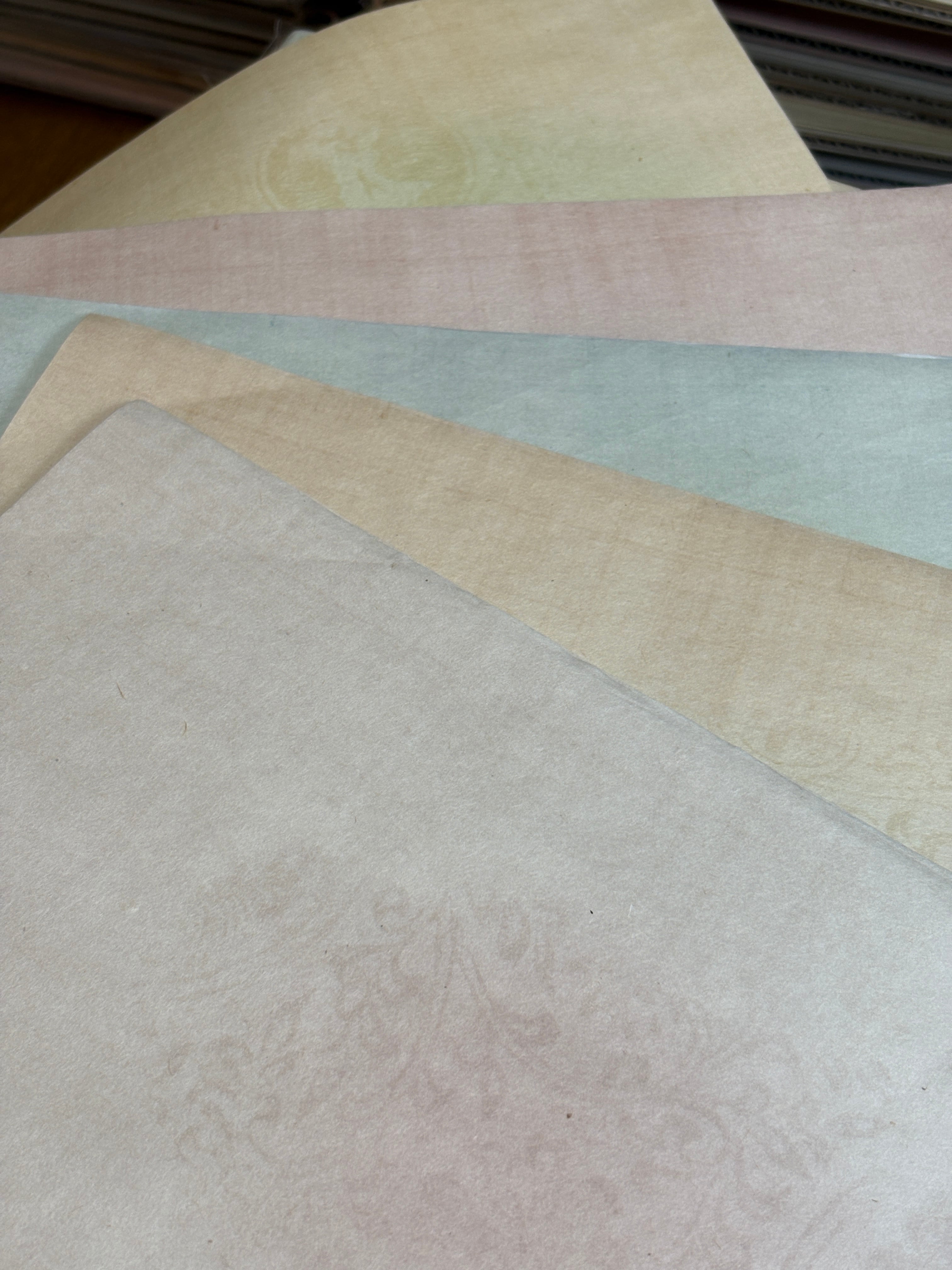中字用で引っ掛かりがあるツルツルしすぎない紙質で透かし文様が入った三色ボカシ風が五柄×10枚で50枚入りになっております。