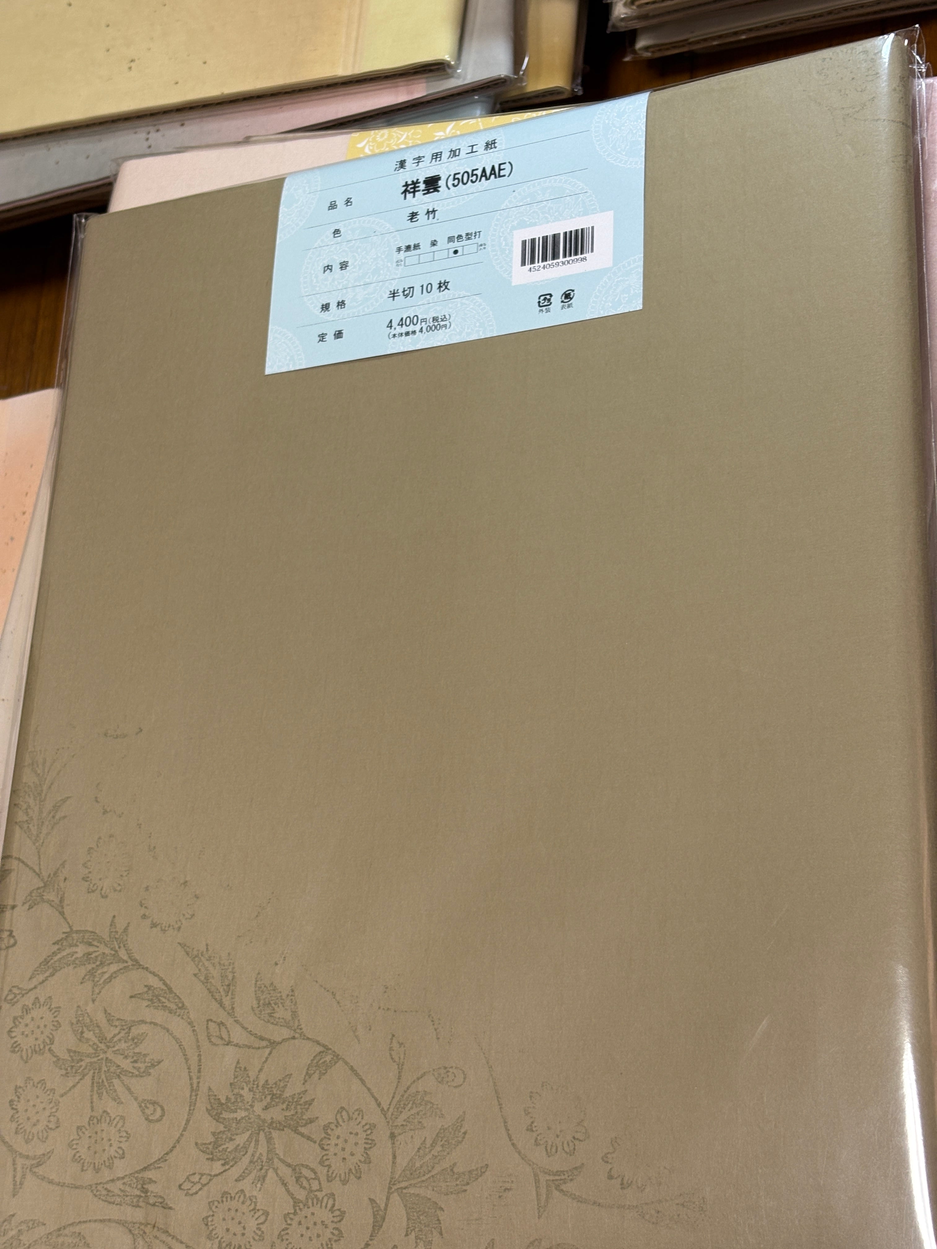 漢字用加工紙『祥雲(505AAE)』(老竹色)半切10枚