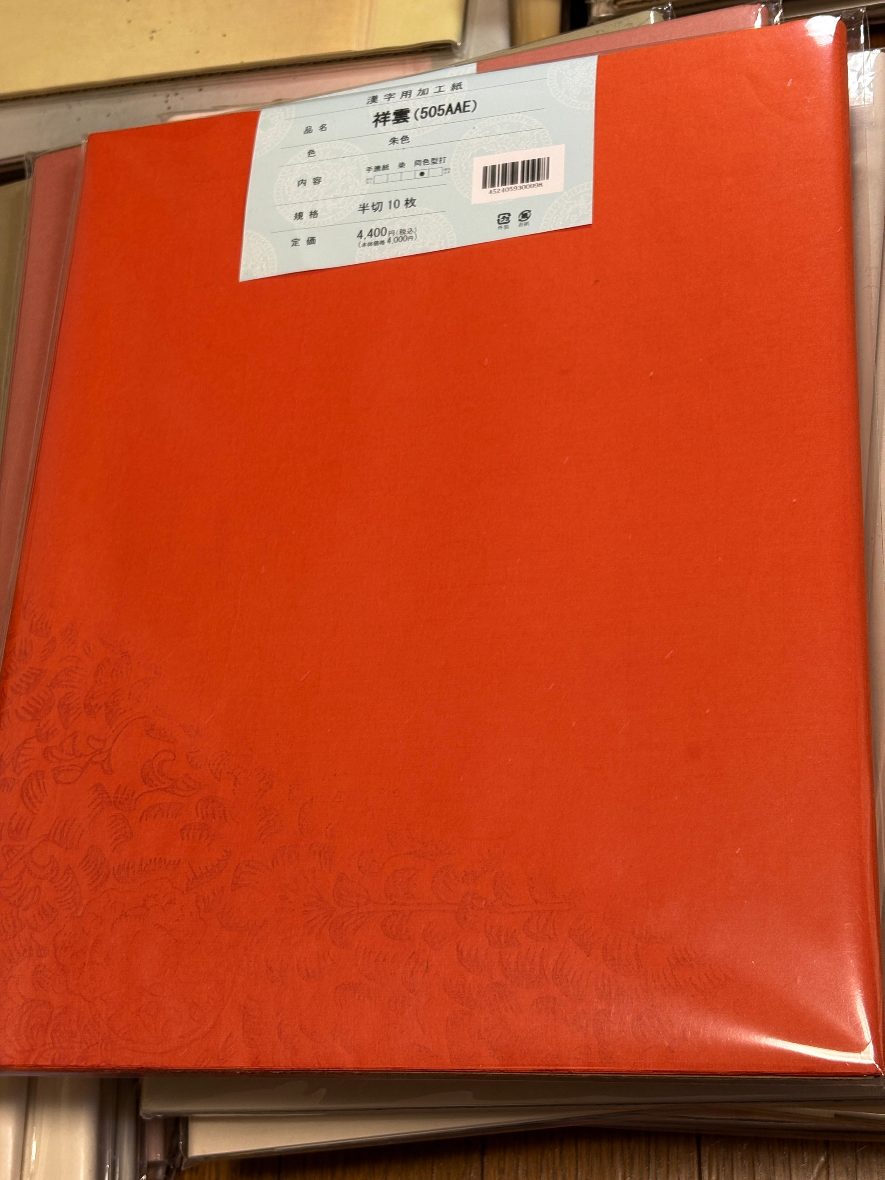 漢字用加工紙『祥雲(505AAE)』(朱色)半切10枚