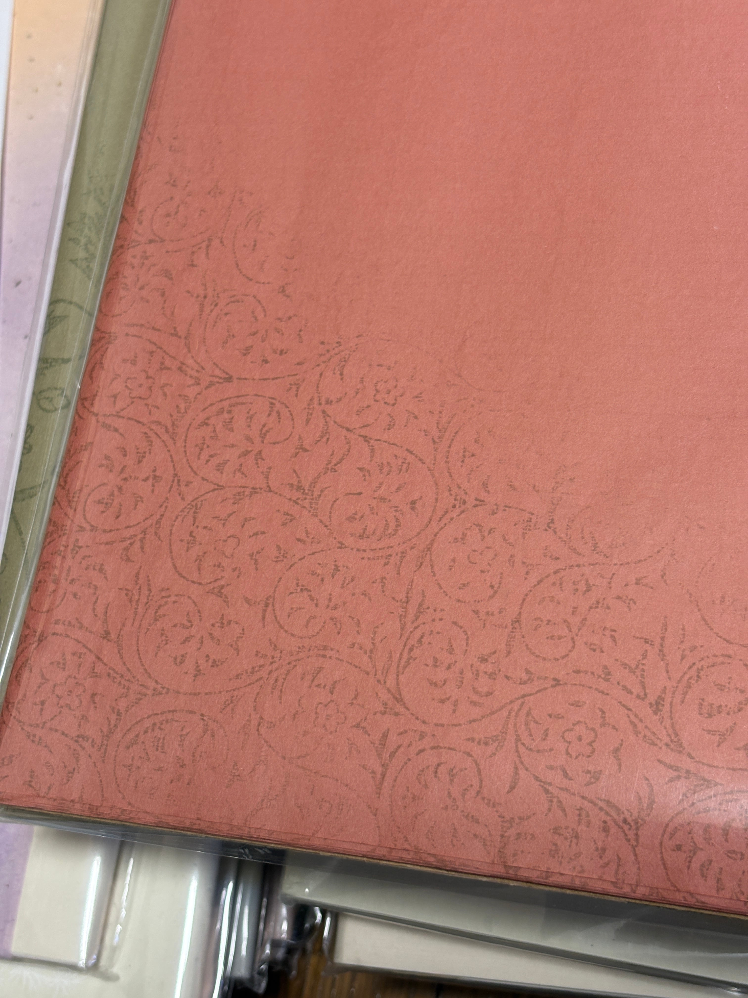 手漉きの染め紙で同色型打ちの紋様が入った半切サイズ(約34.5×136cm)10枚入りになります。