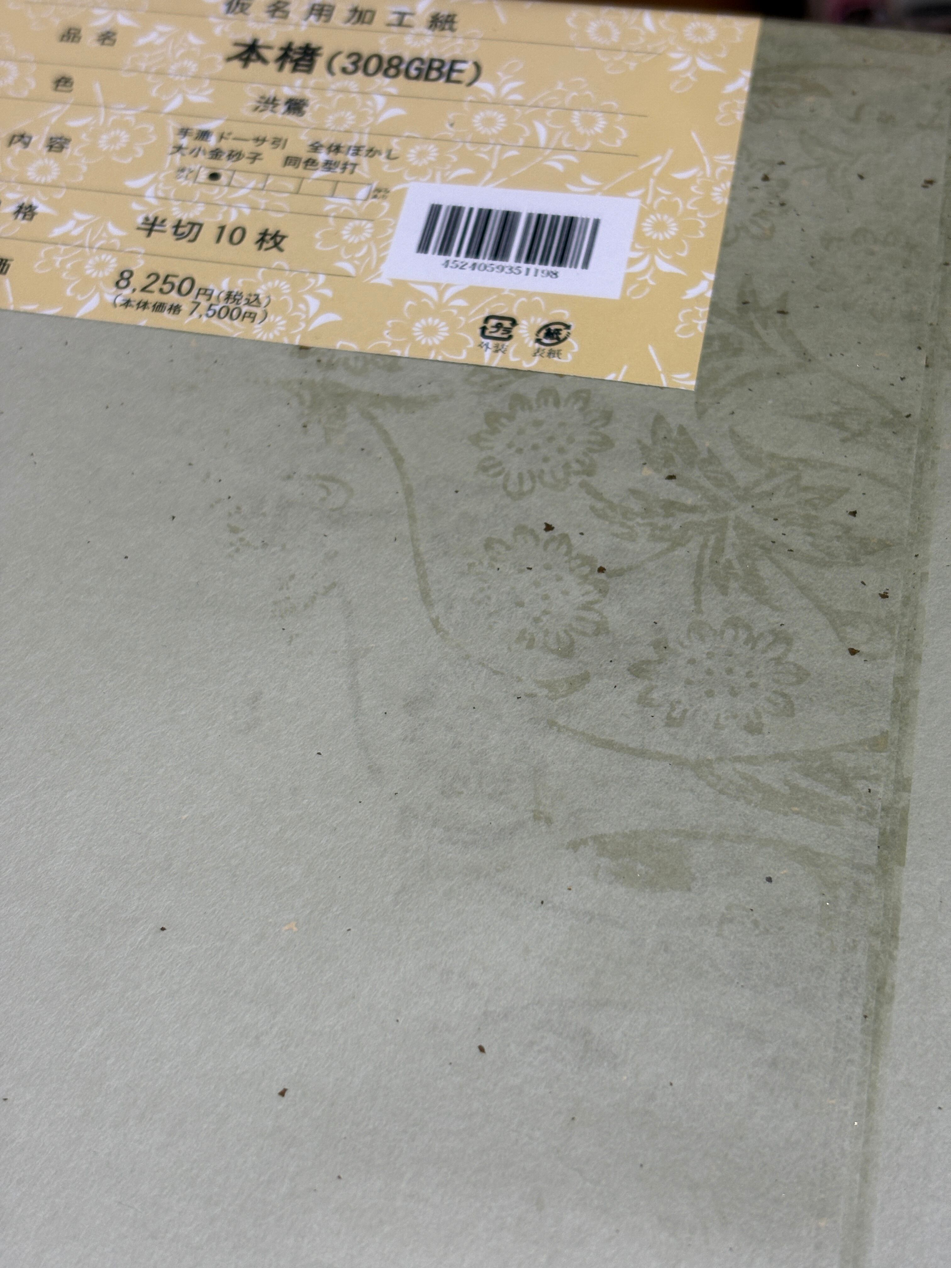 仮名用料紙『本楮(308GBE)※渋鶯』半切判10枚