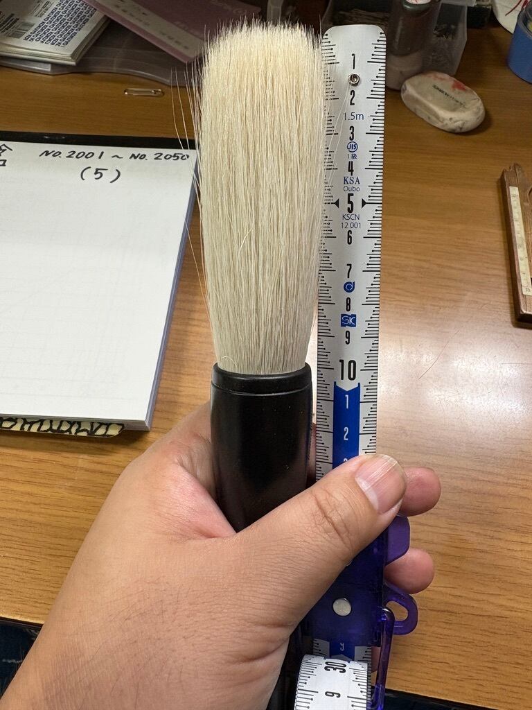白馬毛で硬さも程よく10cm長さがある木軸の筆で、しかもこの値段に収まるものはなかなか無く、極力お値段を抑えるために名前もつけず商品名もそのままでやらせてもらっています。