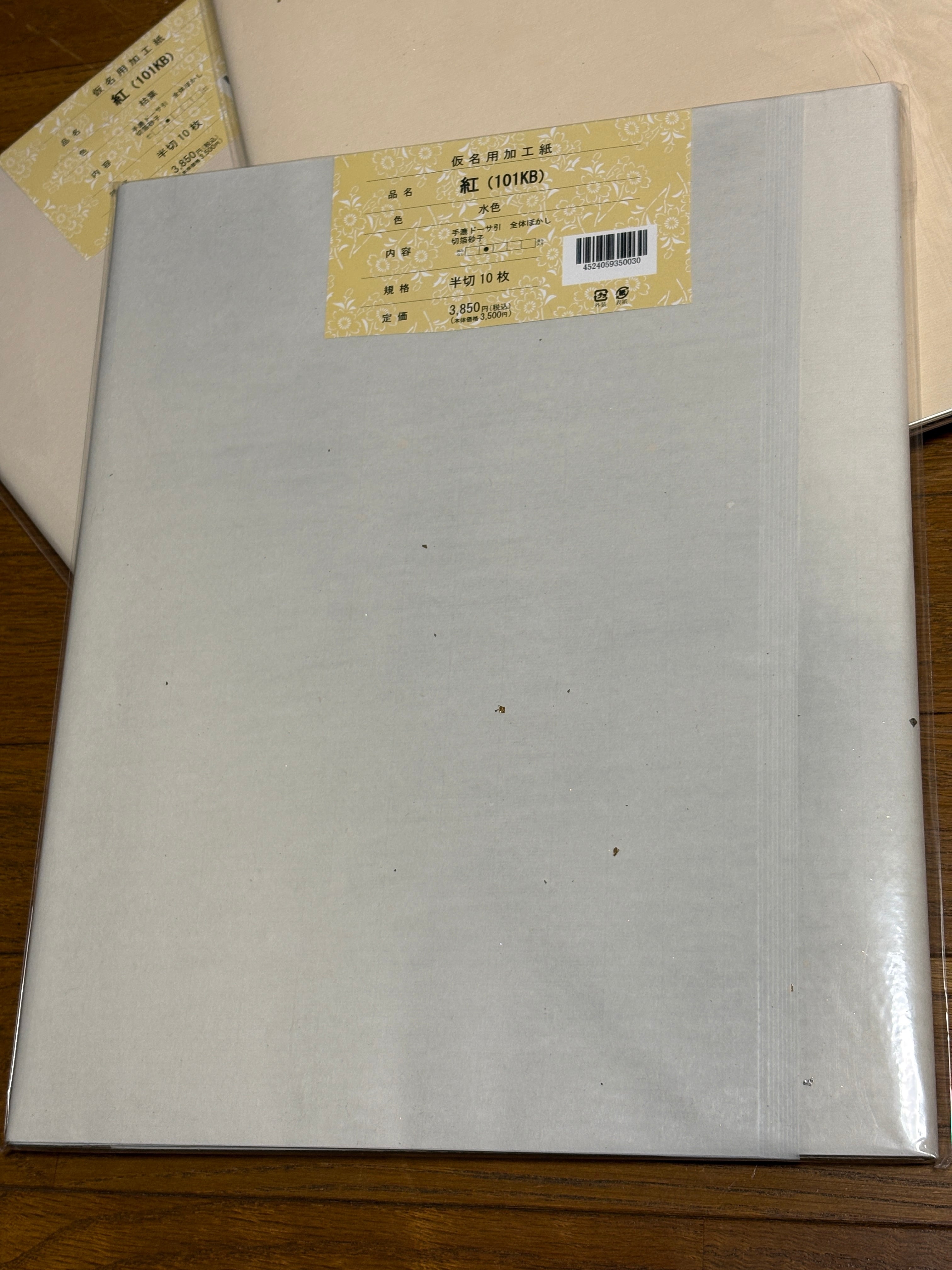 仮名用料紙『紅(101KB砂子切箔)※水色』半切判10枚