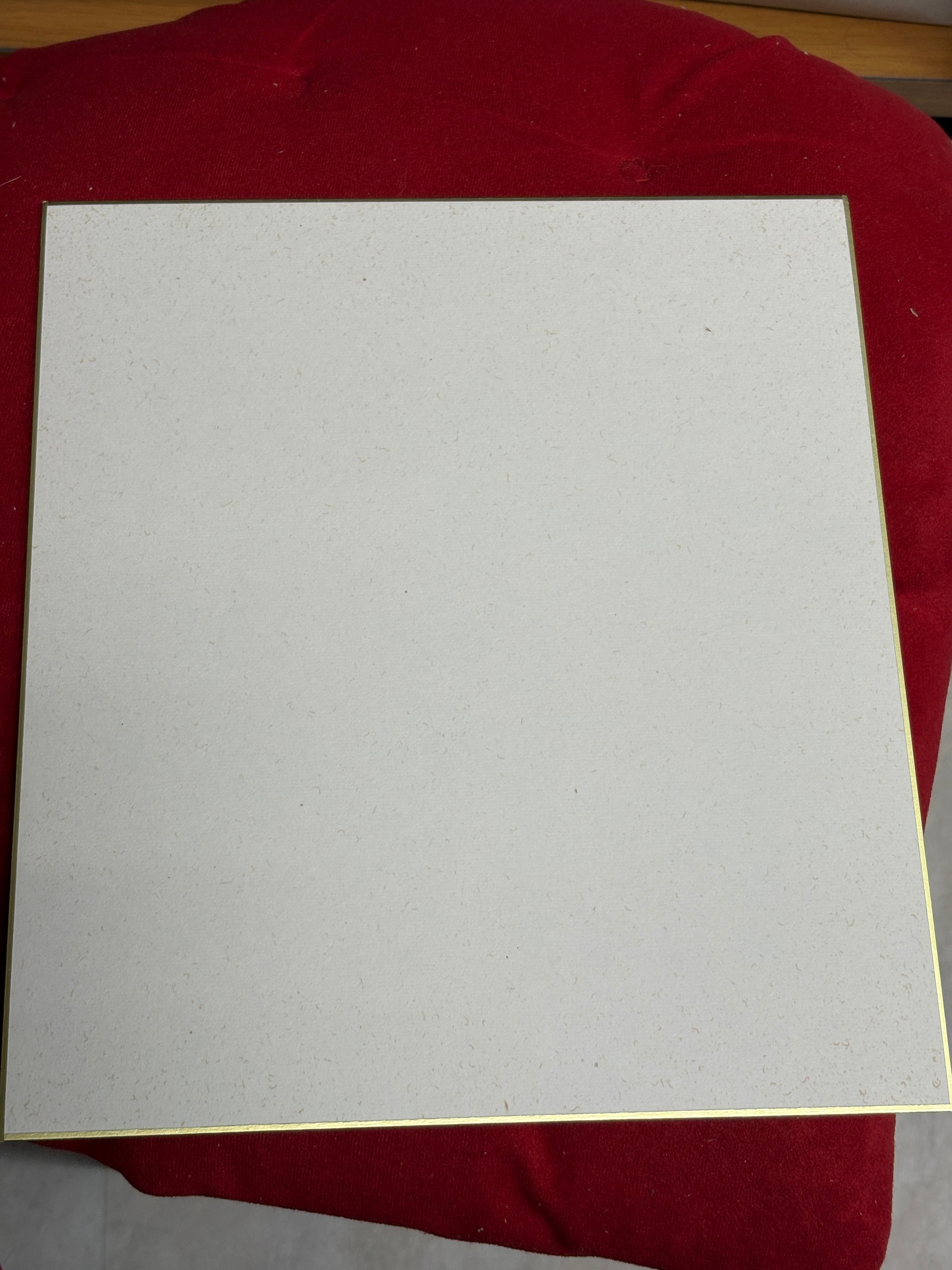 サイン色紙などにも使われる一般的な色紙サイズ『大色紙(24.2cm×27.3cm)』でちゃんと墨が入る本画仙紙なんですが、シミが入ってしまいましたので10枚を割引価格で販売します。