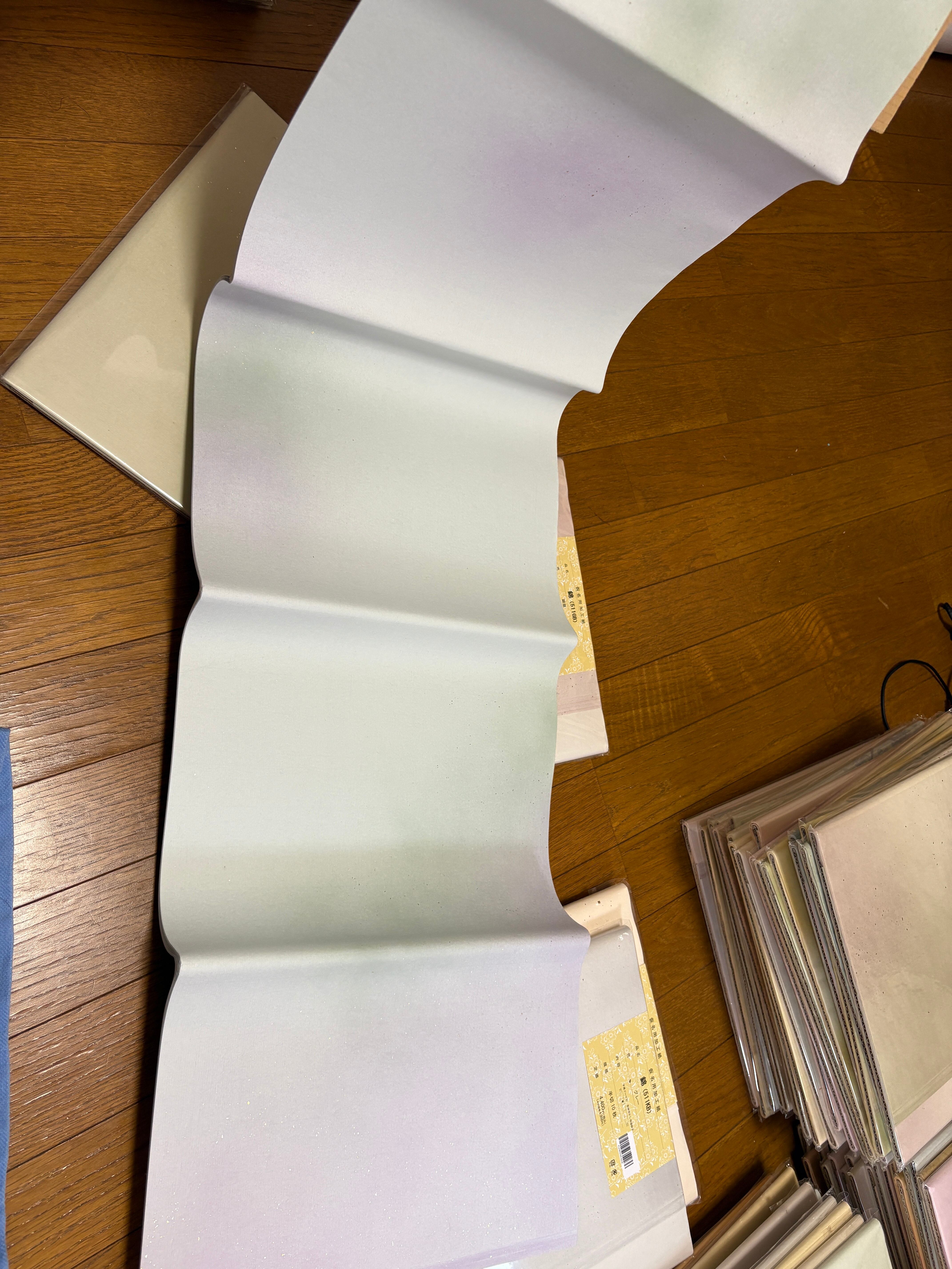 この紙の特徴は何といっても三色ぼかし、雰囲気がわかるように三つある真ん中のベースが鼠色を広げております。