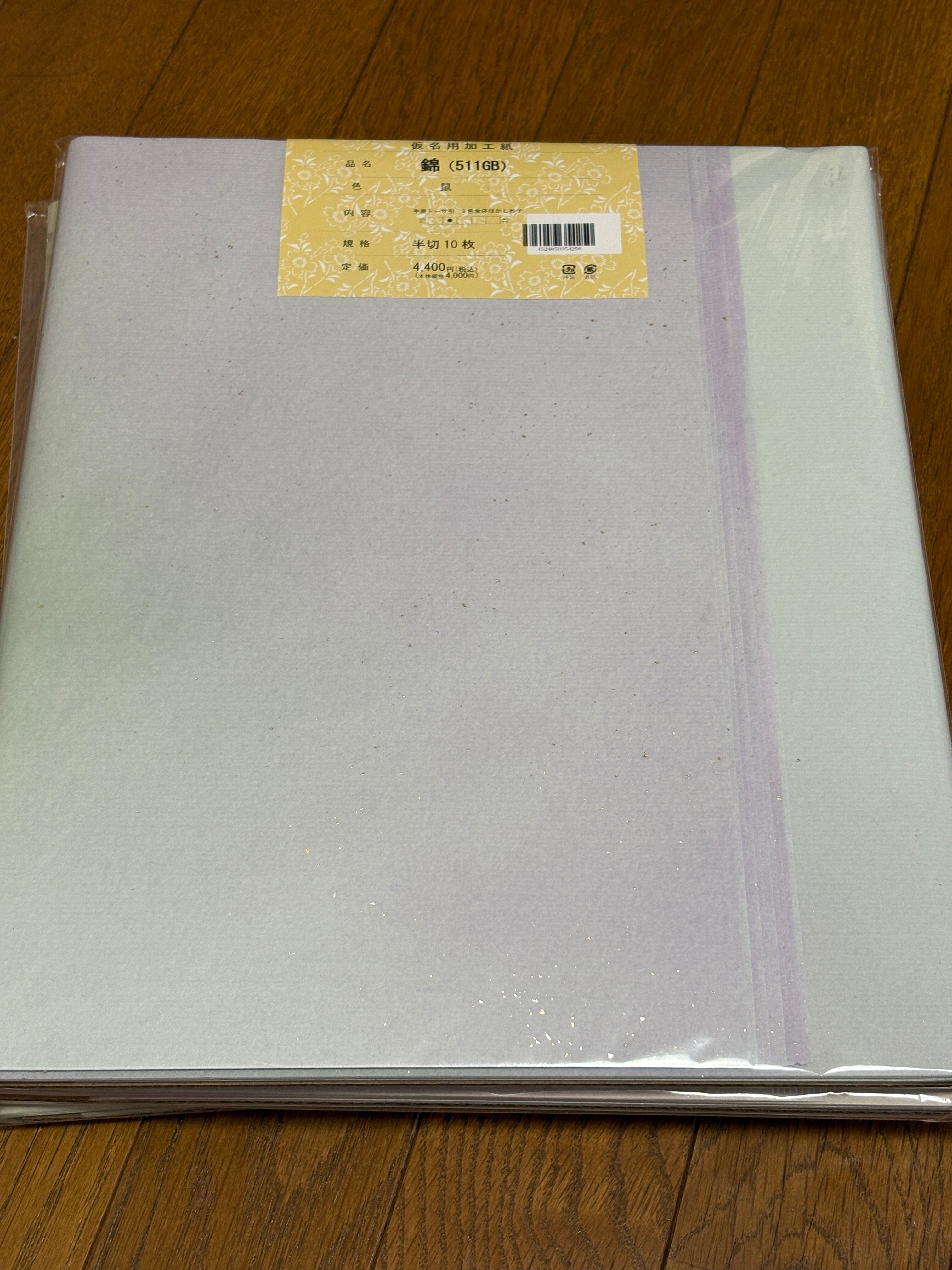 仮名用料紙(滲みが少ない綺麗な紙)『錦(3色全体ぼかし砂子)』半切判10枚