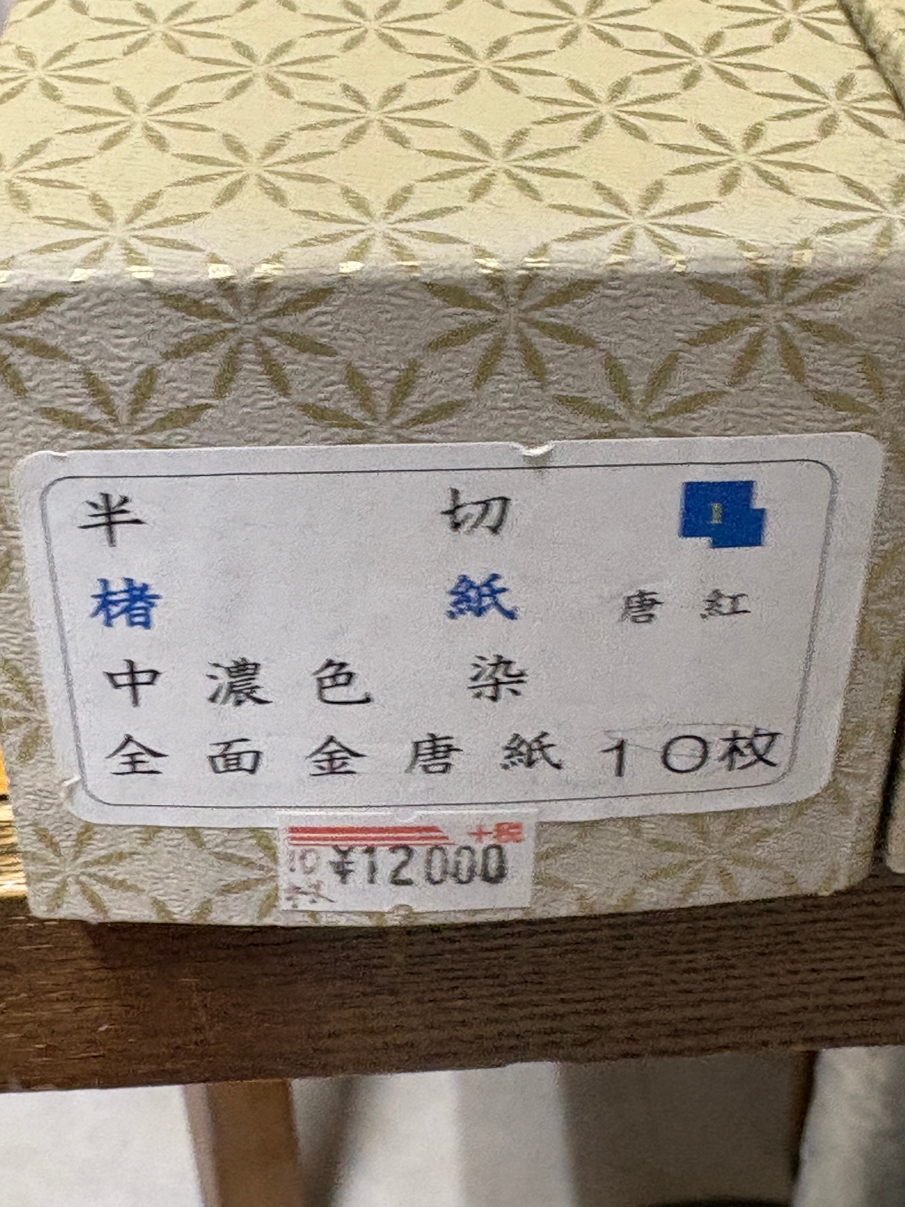 楮紙『中濃色染全面金唐紙【唐紅】』半切5枚