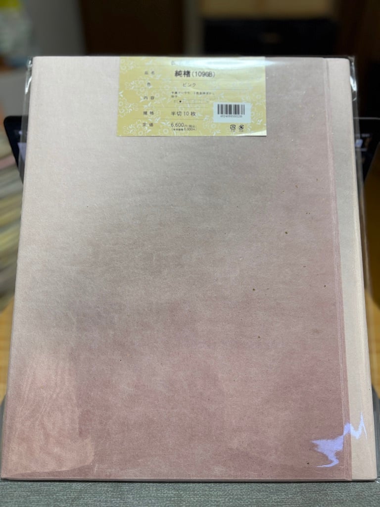 料紙・純楮(109GB)『手漉きドーサ引き3色全体ボカシ砂子』半切判10枚