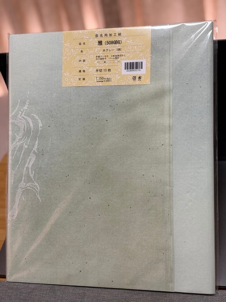 料紙・雅(508GBG)『手漉ドーサ引・3色全体ぼかし大小金砂子・パール型打』半切判10枚