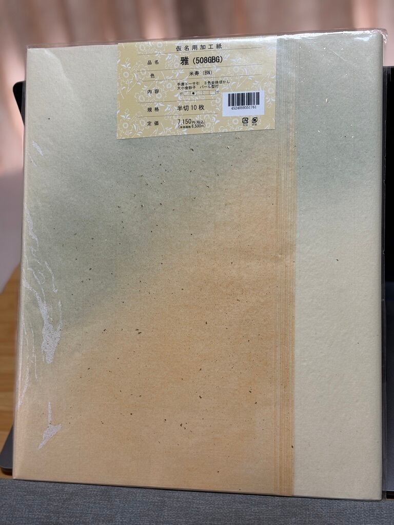 滲みの少ない加工をされた仮名用手漉き画仙紙の半切サイズ(約35cm×約136cm /書道の全紙の紙の幅を半分にしたサイズであり、最も一般的に使用される書道用紙の一つです)になります。