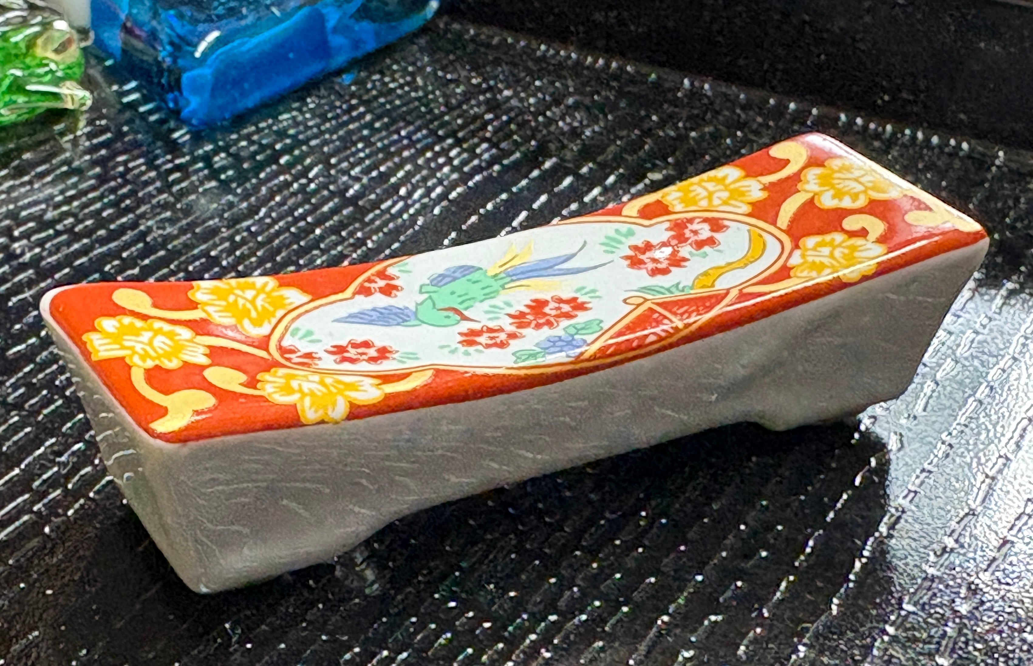 陶器・長角筆おき(錦赤)