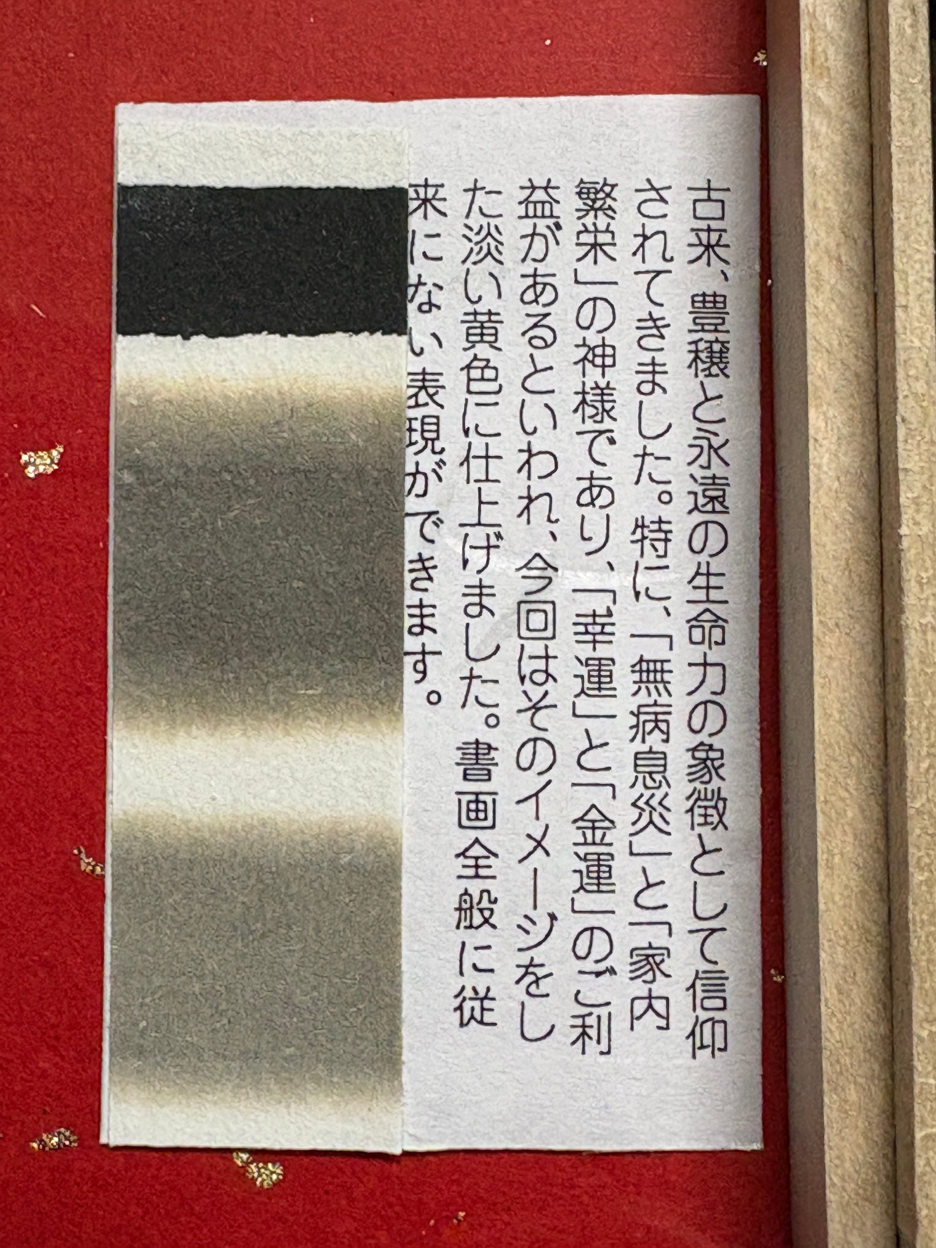 こちらは去年の巳年に販売された干支墨なんですが、濃墨で黒、淡墨で黄色っぽい滲みが出るのが面白いと思いまして、色墨として仕入れてみました。