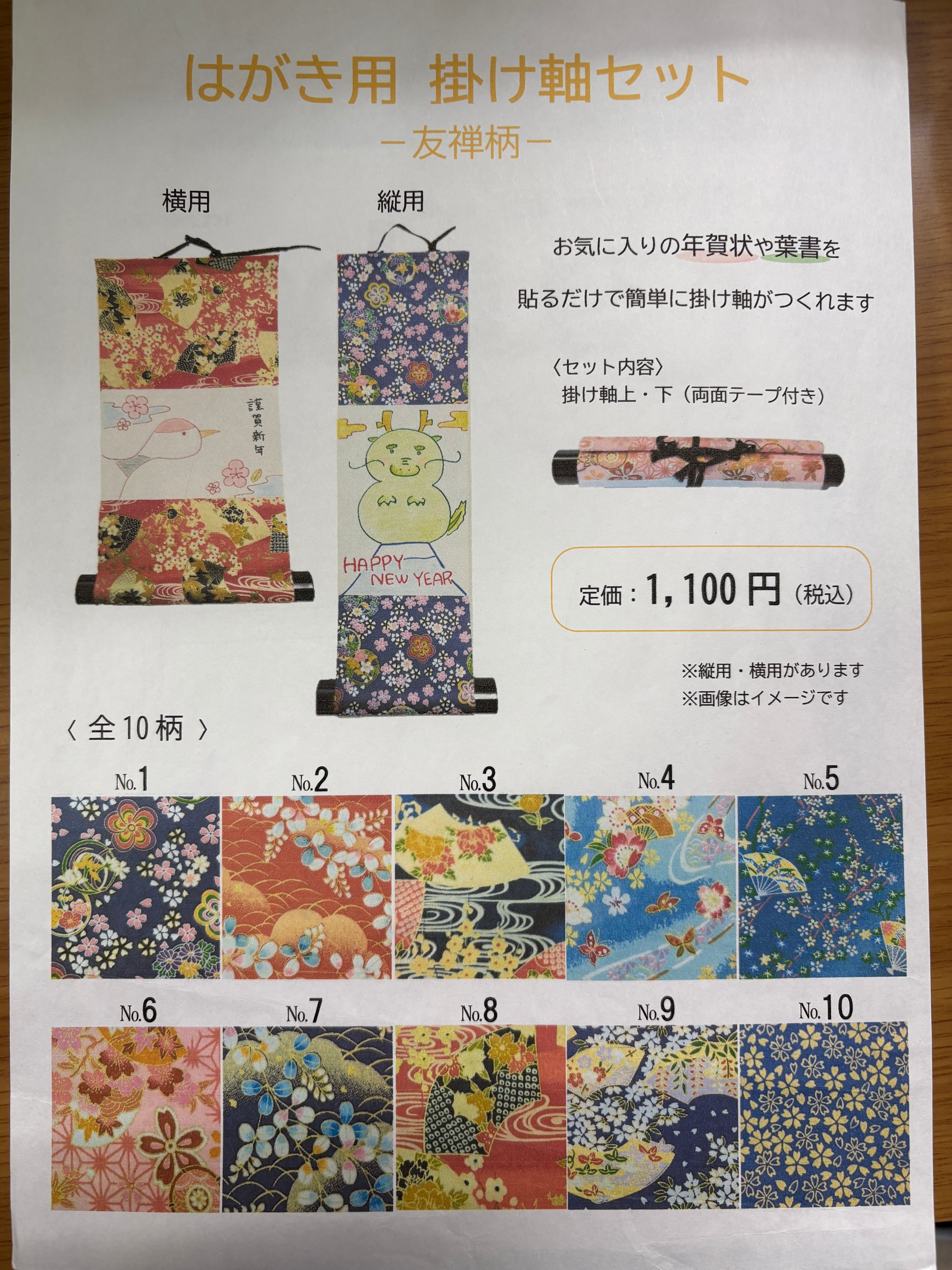 ハガキ用(縦用)友禅柄掛け軸セット(3本組)