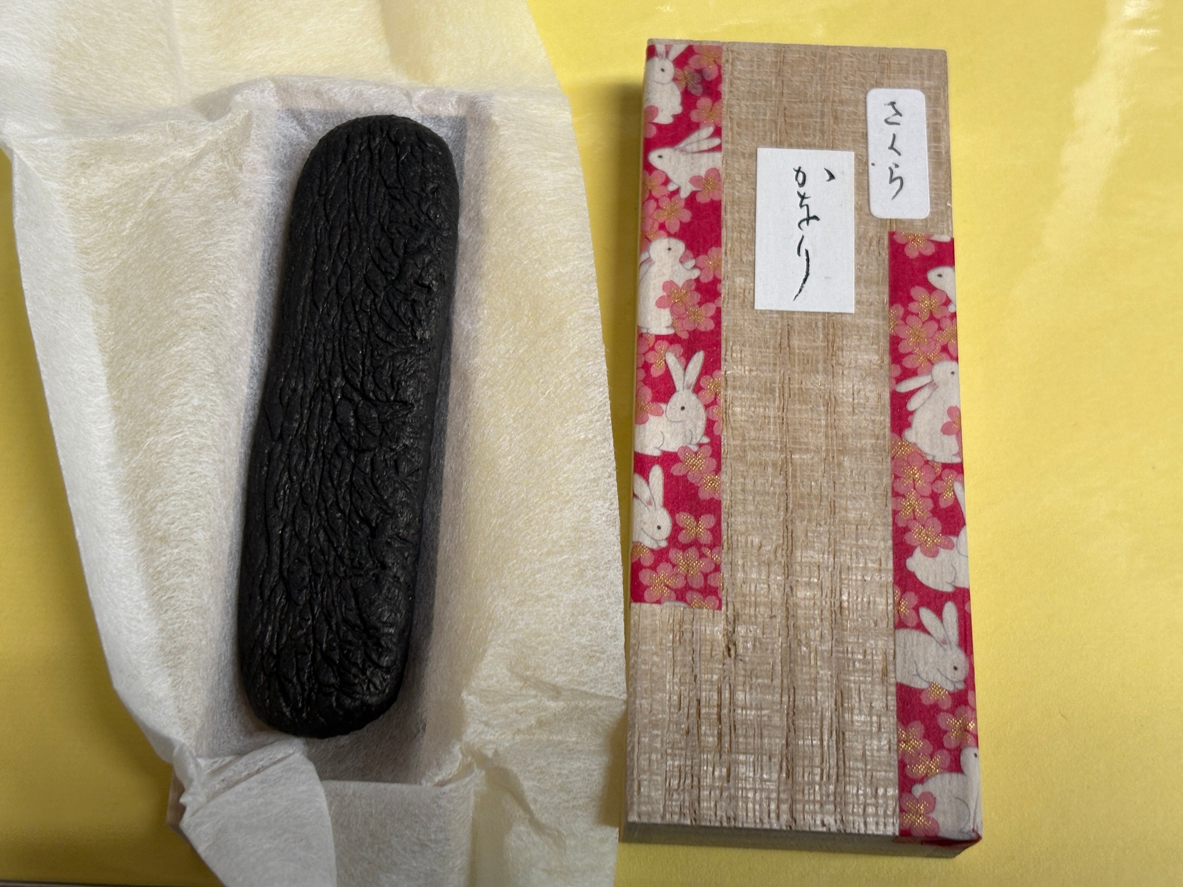 磨る前からほのかに桜の香りが漂い、磨るほどにいい香りがする墨です。