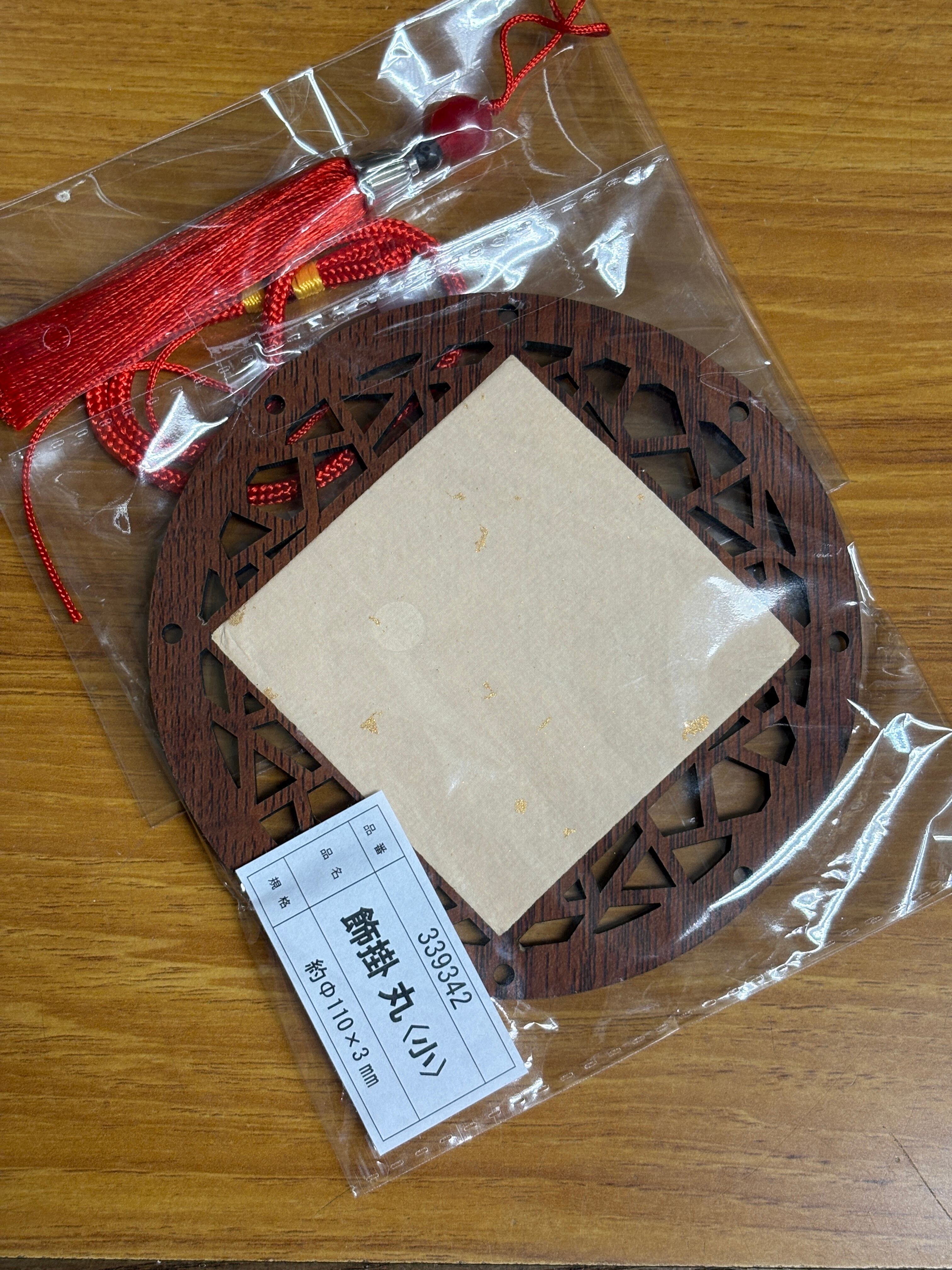 細工が鮮やかな木板の裏表両面に冷金箋(漢字用の金箔がふられた紙)が貼ってあります。