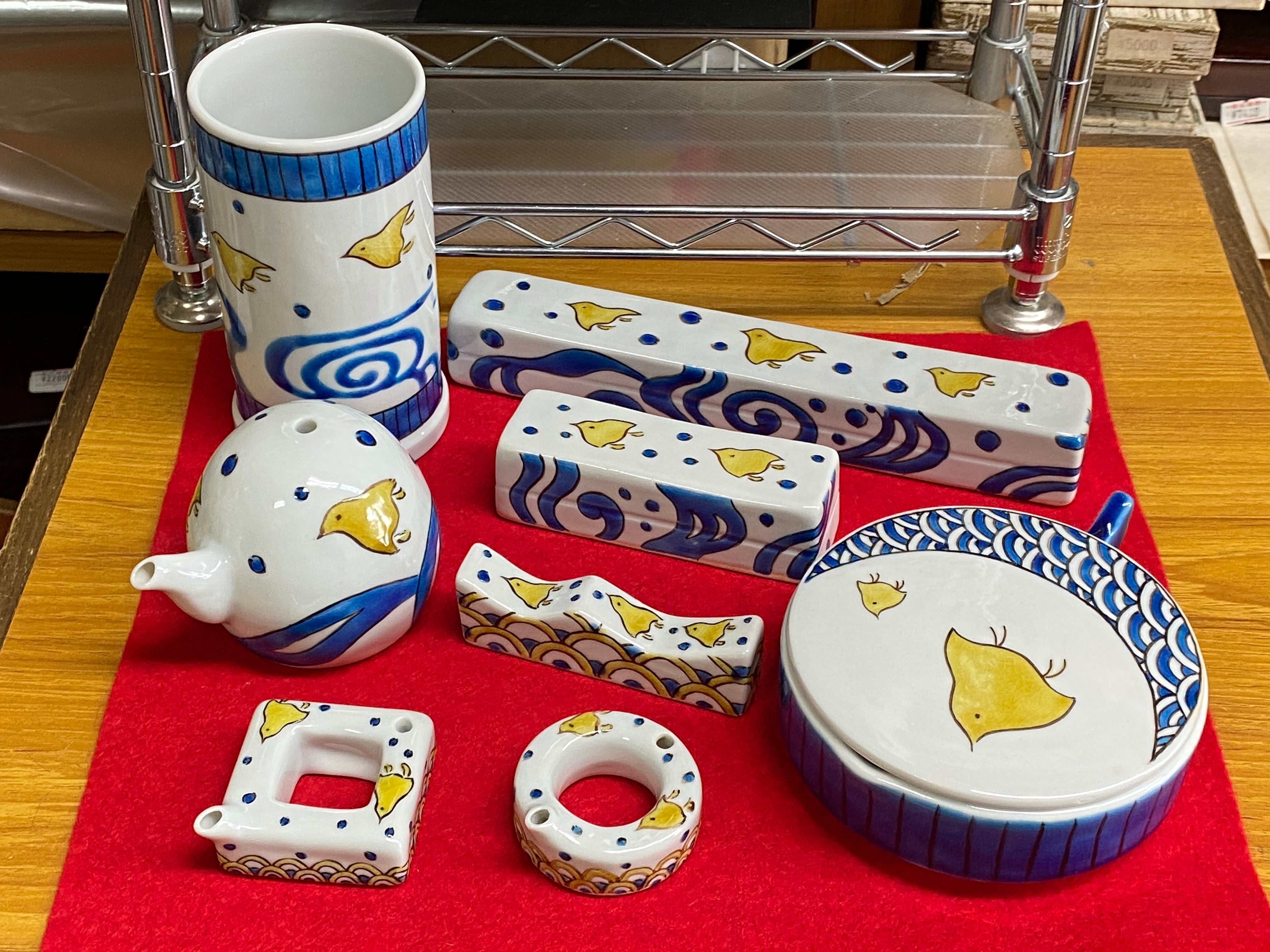 九谷焼『千鳥文様筆筒』 Kutani Ware Brush Holder – “Chidori Pattern”