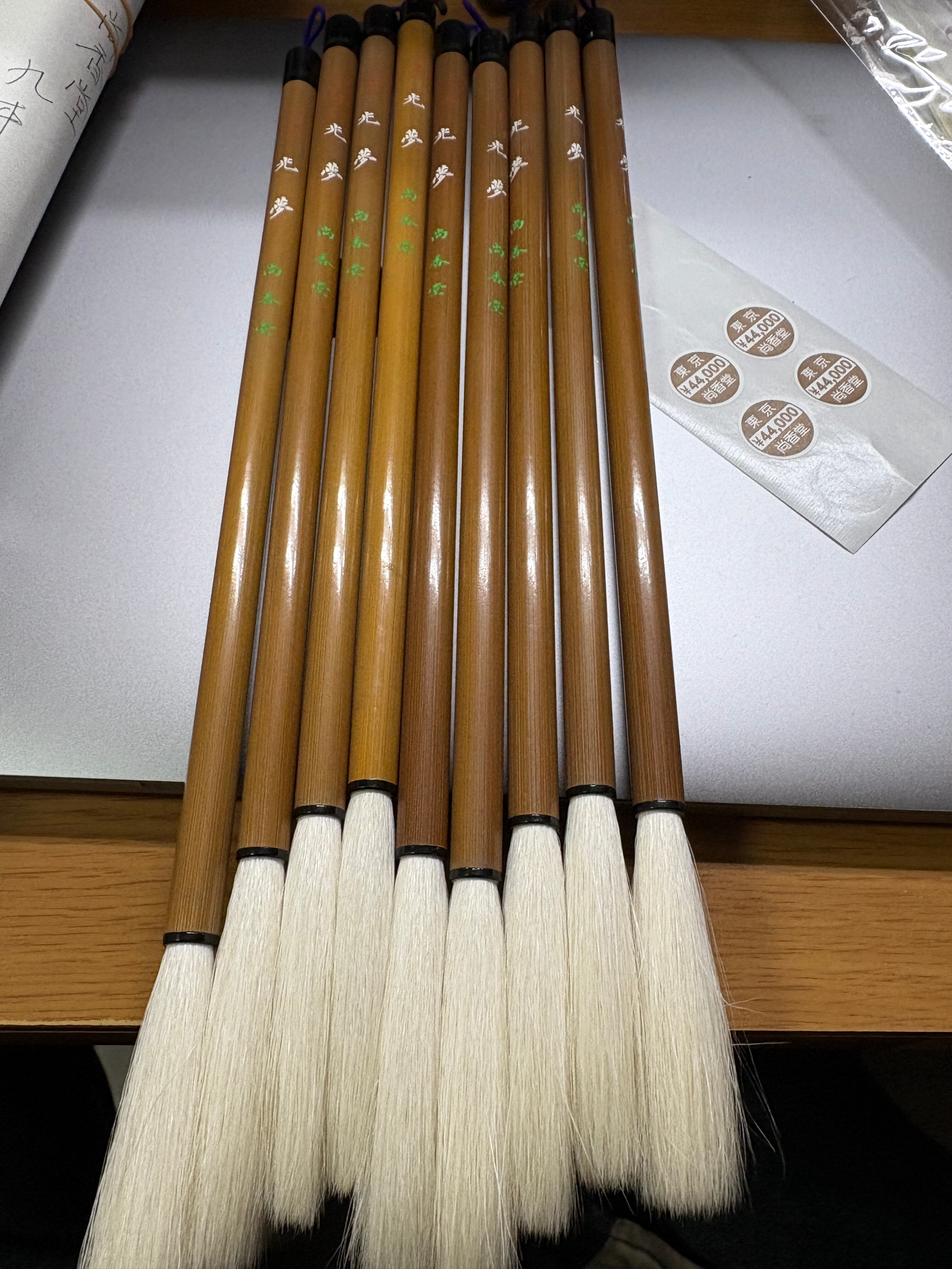 こちらは本店で販売されてます『光夢』大•中よりお手に取りやすい価格の筆を、ということで作りました『光夢•小』(画像の一番左)、サイズは穂の長さが6センチ、軸の太さが1センチ弱になります。
