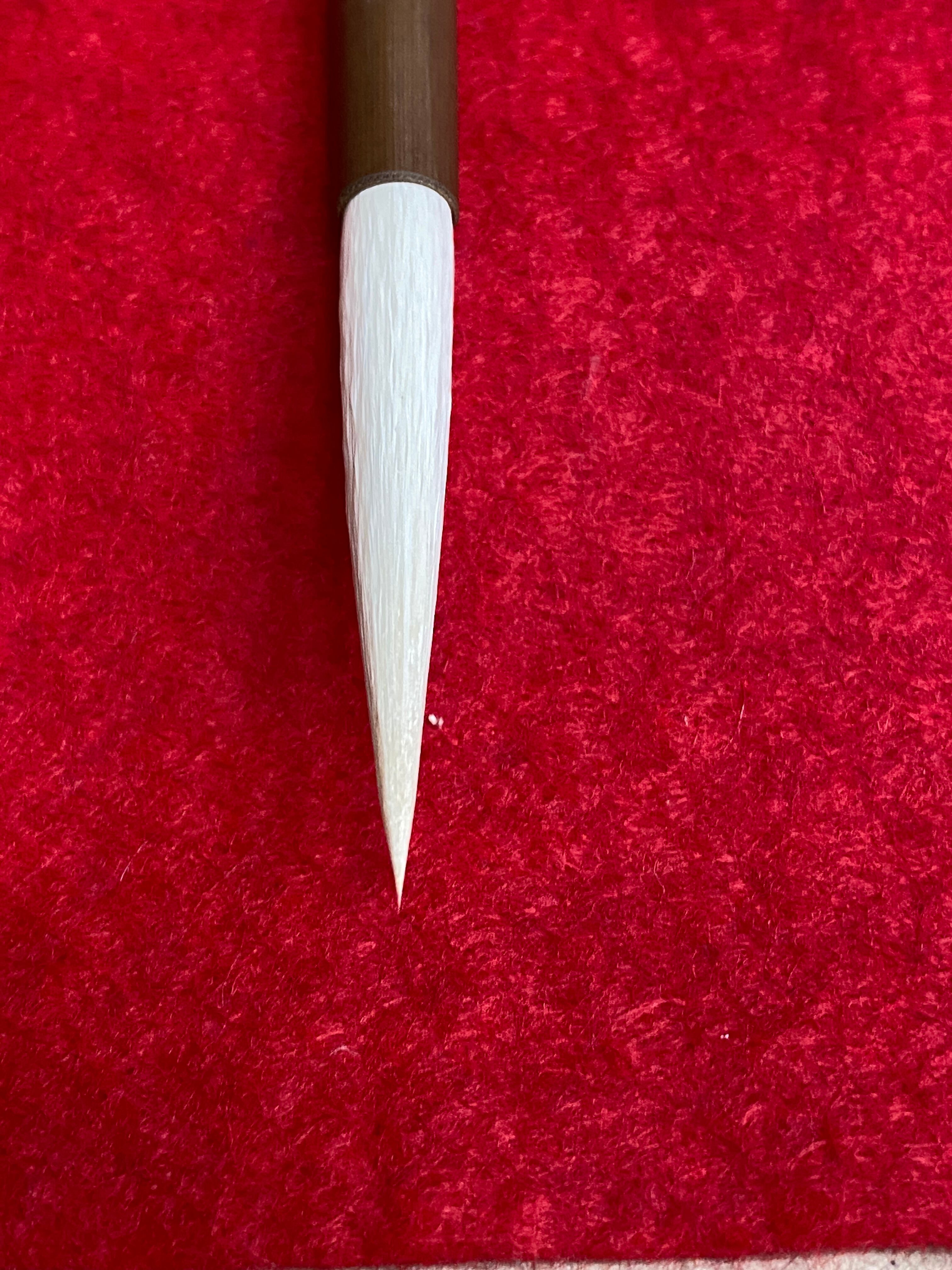以前、お試し筆大会をやったところ、評価が高かった筆で、やはり古い羊毛なのである程度のコシがありつつ羊毛の良さも出ているところと当時のままの価格も相まって好評をいただきまして、そろそろ欠品かな〜と思っています、、、もう一度作ると倍ぐらいかかると言われたので、これで終了かと思っております。