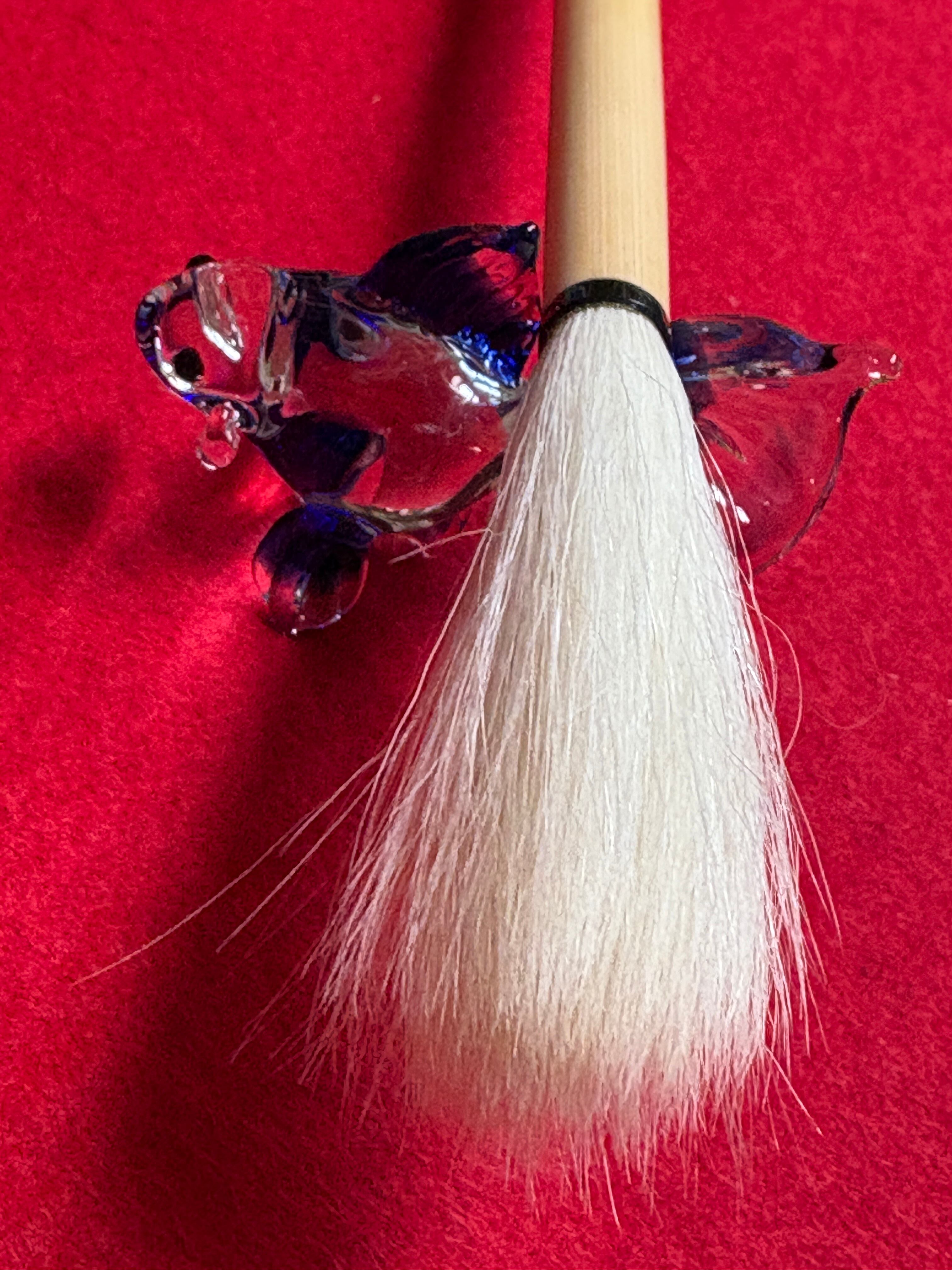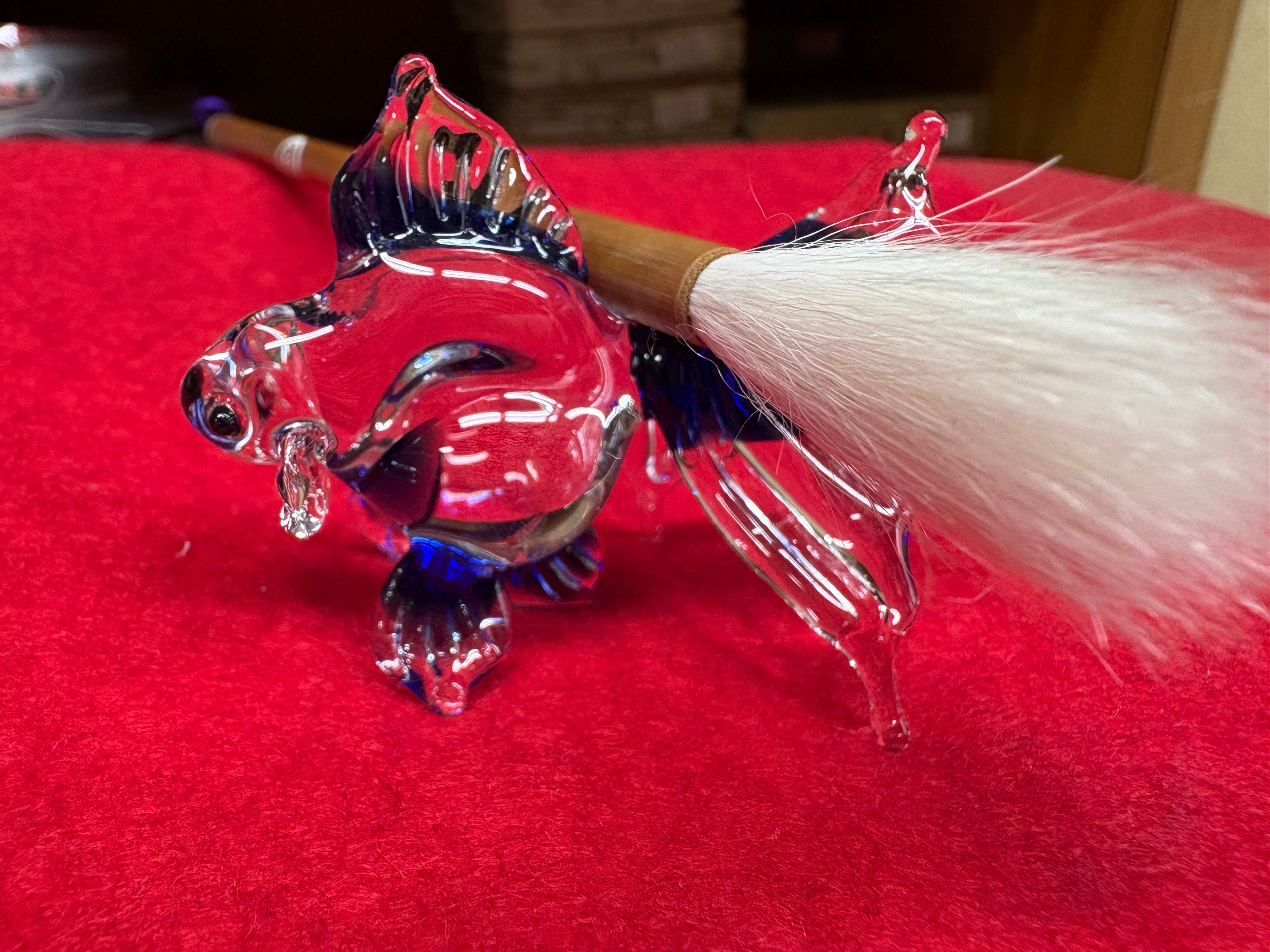 This elegant blue goldfish-shaped brush rest is handcrafted from glass.