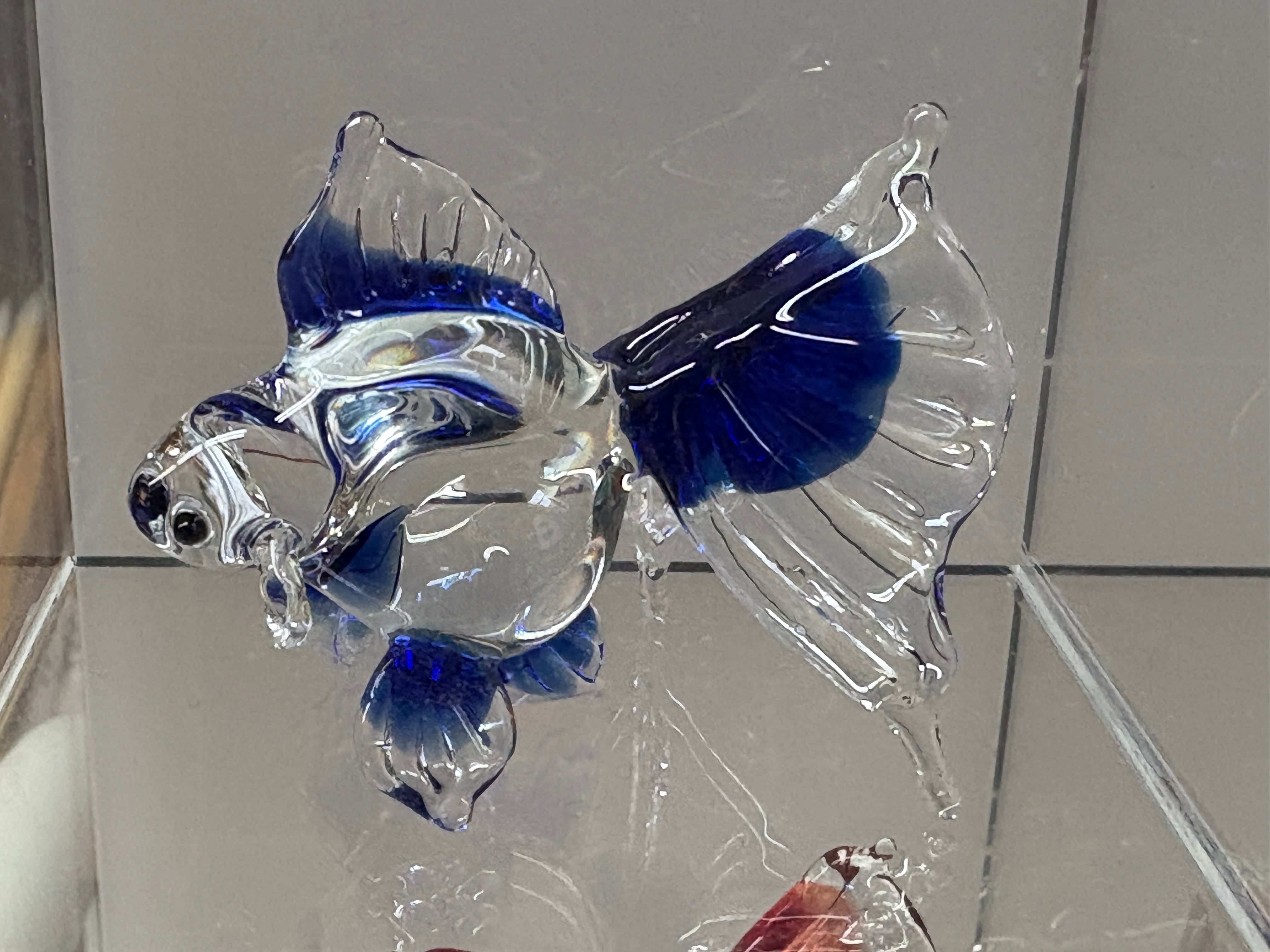 手づくりガラス筆架『金魚(青)』 Handcrafted Glass Brush Rest – “Goldfish” (Blue)
