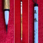 The standard Tamatubaki has a bristle length of 21 mm and is favored for kana calligraphy. This large version features a shaft diameter of 7 mm and a slightly longer bristle length of 24 mm, along with an extended handle.