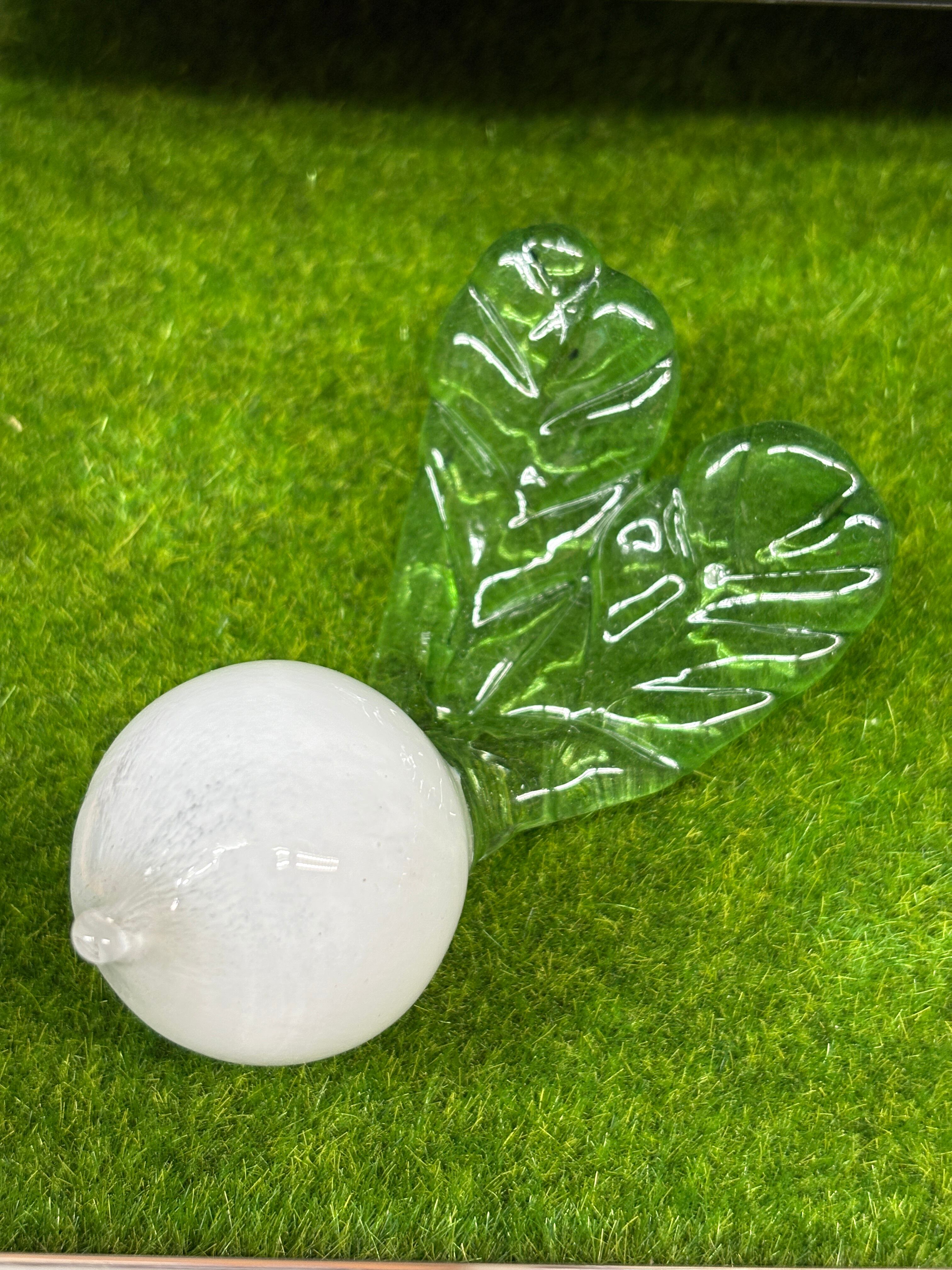 手づくりガラス筆架文鎮『kabu』 Handmade Glass Brush Rest / Paperweight “kabu” (Turnip-Inspired Design)