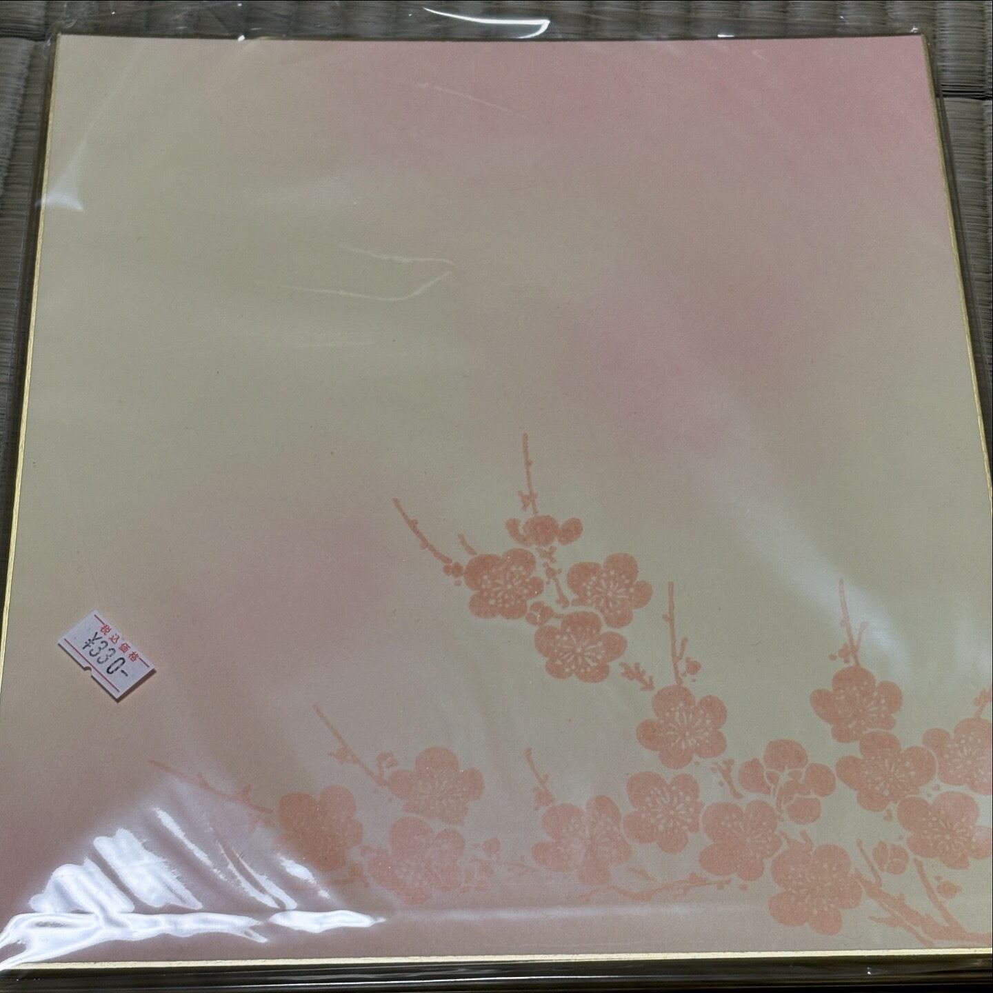 こちらは梅の模様が入った色紙で滲みもなく書きやすくなっておりますので、これからの季節に合った色紙をお使いになるのはいかがでしょうか。