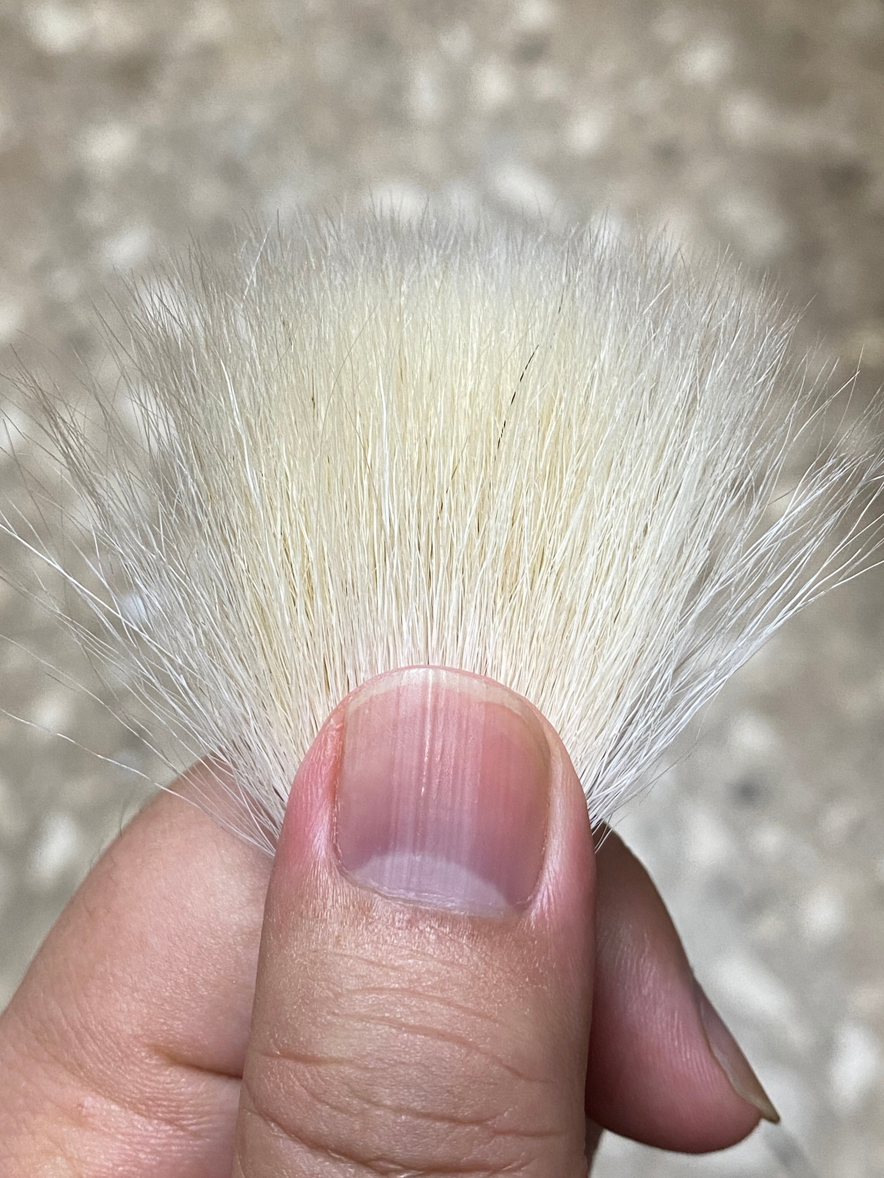 This is a mixed-hair brush made with goat hair and softer white horsehair, offering a smooth and flexible writing experience.