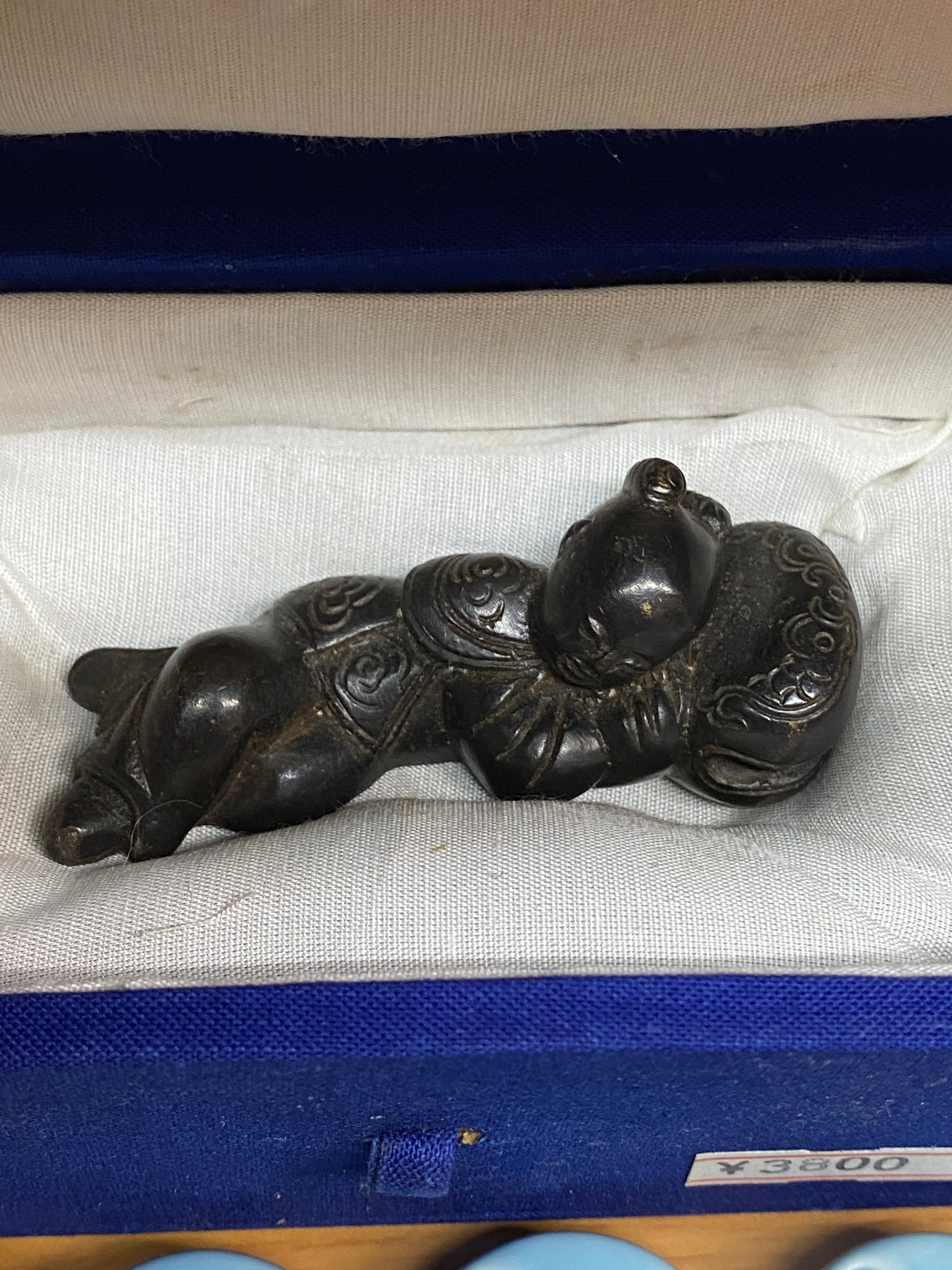 This is a dual-purpose calligraphy item that functions both as a paperweight (shochin) and a brush rest.